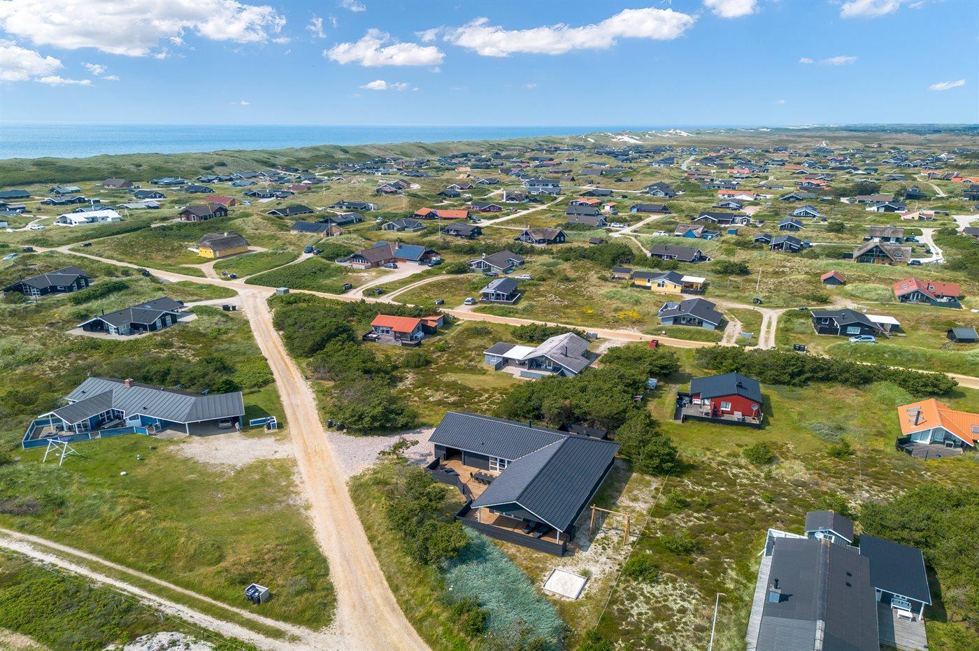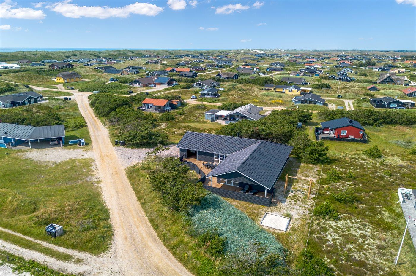 Sommerhuset ligger flot placeret i klitlandskabet, og du vil fornemme den helt specielle atmosfære, der er ved at bo i et hus nær Vesterhavet. Den hyggelige fiskerby Hvide Sande ligger en kort køretur derfra, og her kan du købe friske fisk, nyde en dejlig frokost eller gå på shopping i de små butikker. Er du mere til en aktiv ferie, er der gode muligheder for at vandre eller cykle på natur-cykelstier, der snor sig gennem klitterne og sommerhusområderne. Området er desuden meget kendt for sine gode surf-muligheder både ved Vesterhavet, men også ved Ringkøbing Fjord.