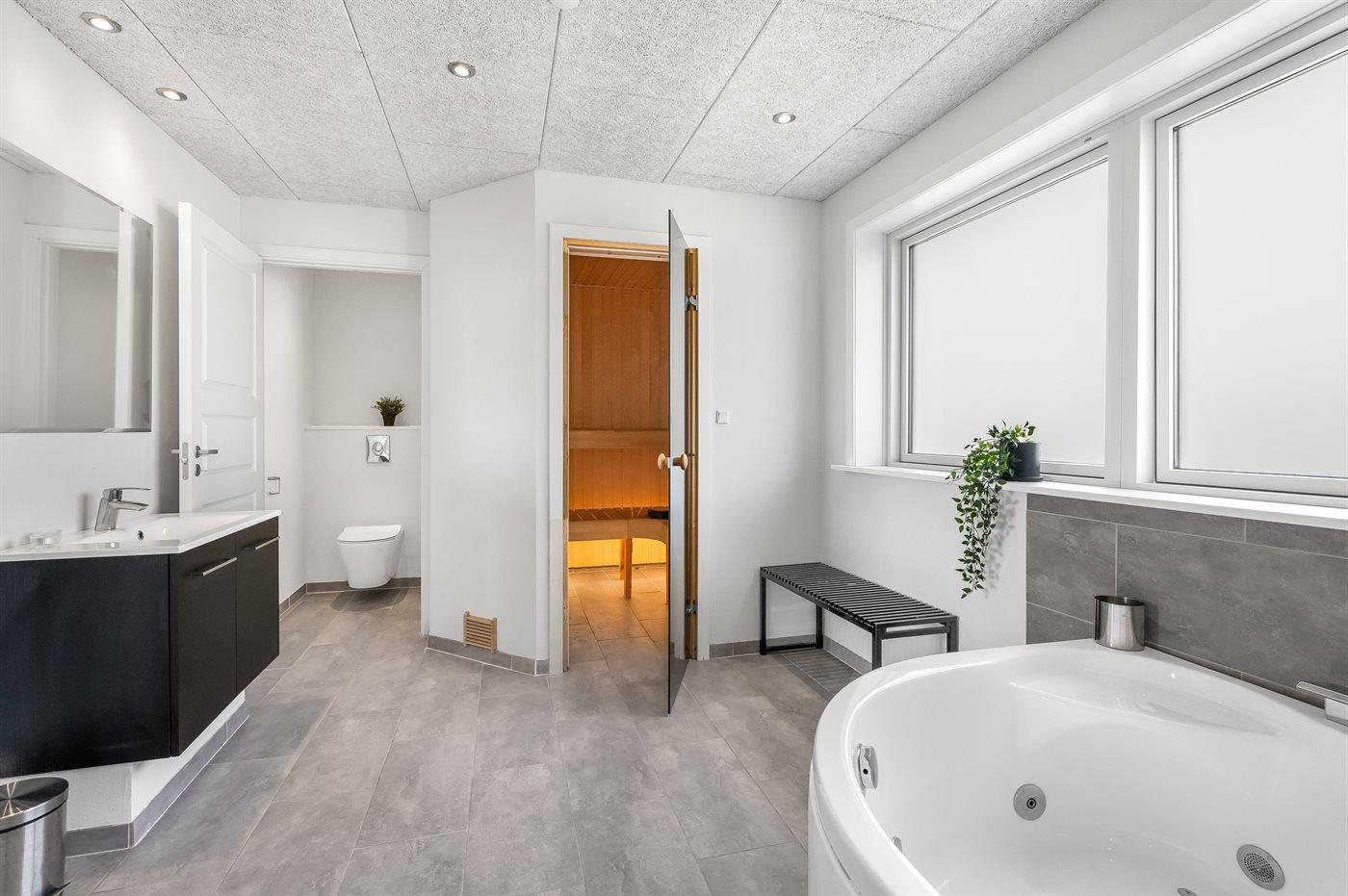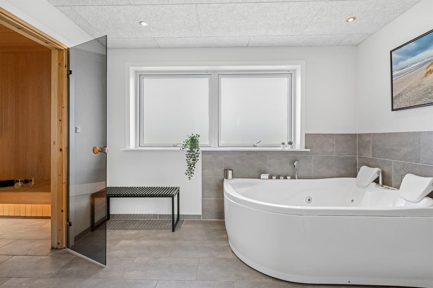 I det ene af husets to badeværelser, kan du lade dig synke ned i det varme vand i spaen eller nyde en tur i saunaen efter en lang gåtur på stranden.