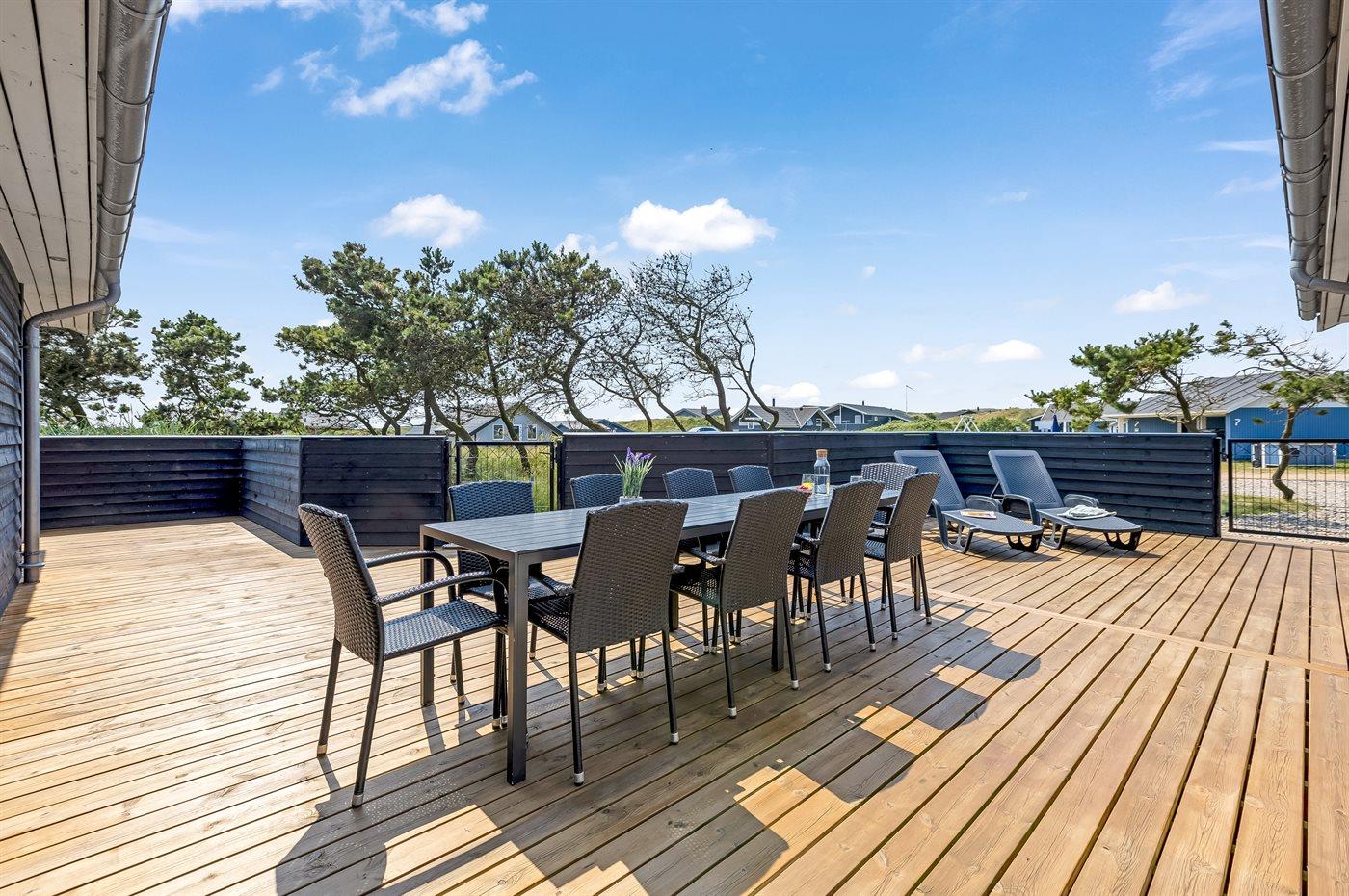 Drømmer du om at tilbringe din ferie i et skønt aktivitetshus kun 400 meter fra Vesterhavets bølger, så er dette superdejlige og hyggeligt indrettede sommerhus lige noget for dig. Sommerhuset er til 10 personer, og hvis hunden også skal med til Vesterhavet så er der ved sommerhuset, i forbindelse med den lukkede terrasse, et stykke indhegnet græsareal hvor hunden kan lege.