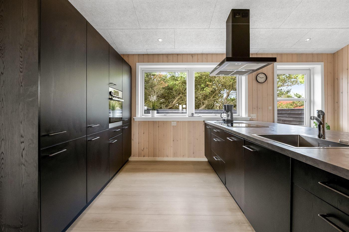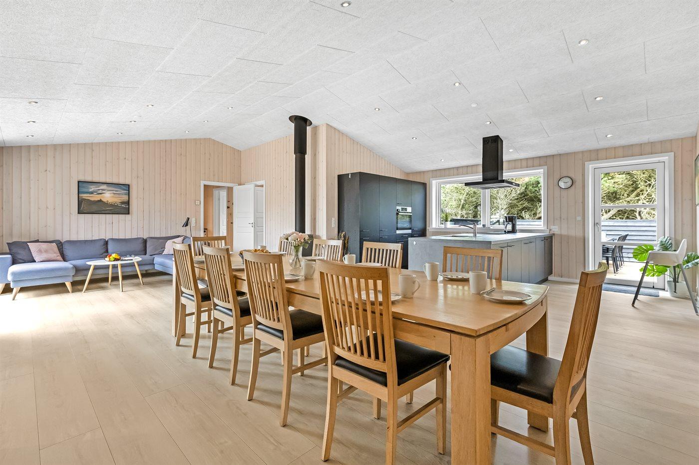 I sommerhusets store og veludstyrede køkken er der plads til samvær, hygge og madlavning. Her findes der bl.a. 2 køleskabe, så der er god plads til mad og drikke.