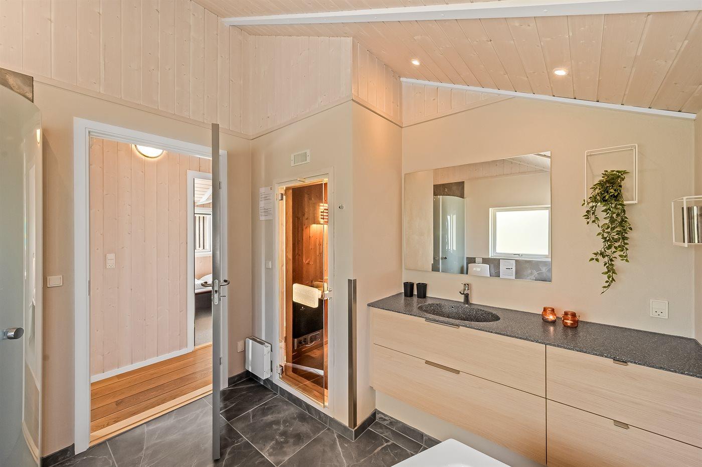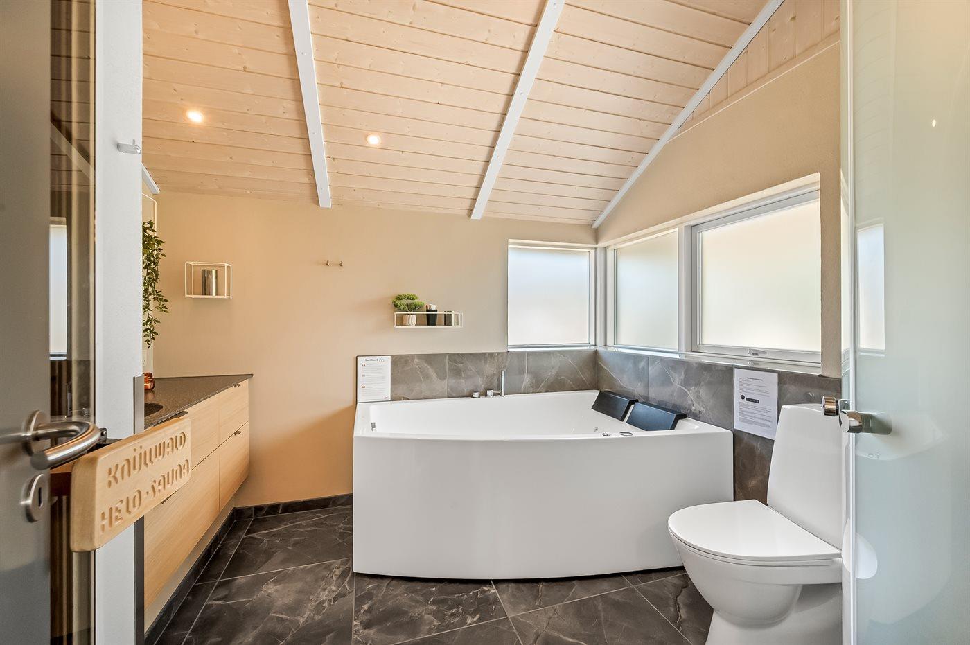 Der er 2 badeværelser med bruseniche og 2 toiletter. Der er gulvvarme på 2 badeværelser. I saunaen er der mulighed for afslapning.