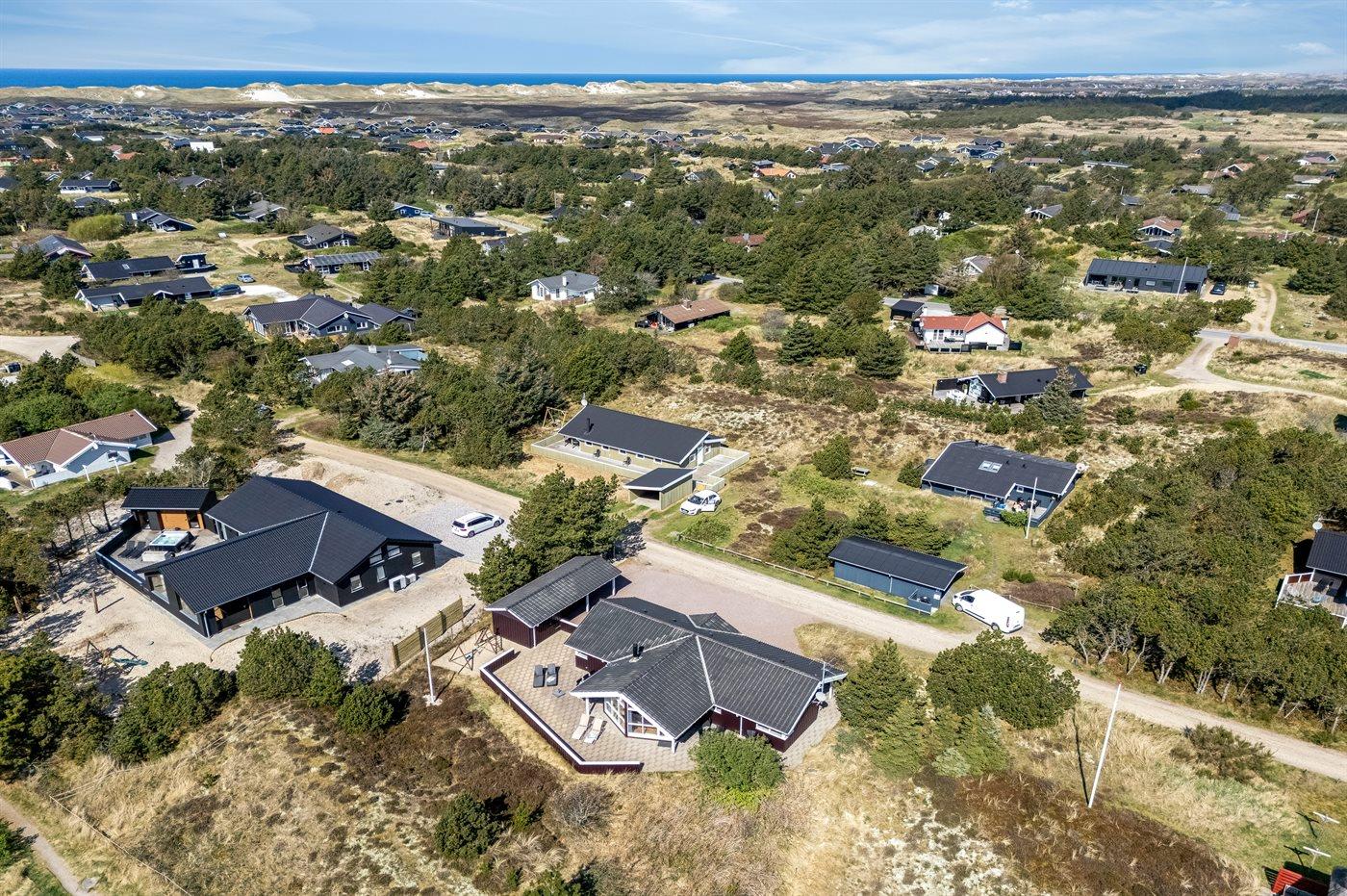 Sommerhuset ligger flot placeret i klitlandskabet, og i vil fornemme den helt specielle atmosfære, der er ved at bo i et hus nær Vesterhavet. Den hyggelige fiskerby Hvide Sande ligger en kort køretur derfra, og her kan i købe friske fisk, nyde en dejlig frokost eller gå på shopping i de små butikker. Er i mere til en aktiv ferie, er der gode muligheder for at vandre, løbe eller cykle på natur-stierne, der snor sig gennem klitterne og sommerhusområderne. Området er desuden meget kendt for sine gode surf-muligheder både ved Vesterhavet, men også ved Ringkøbing Fjord.