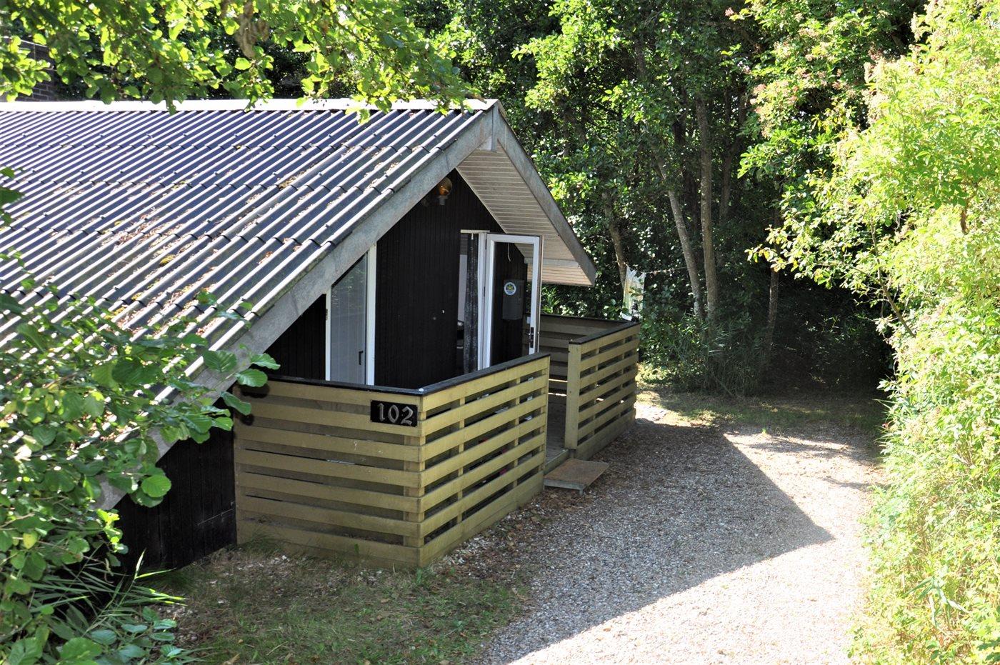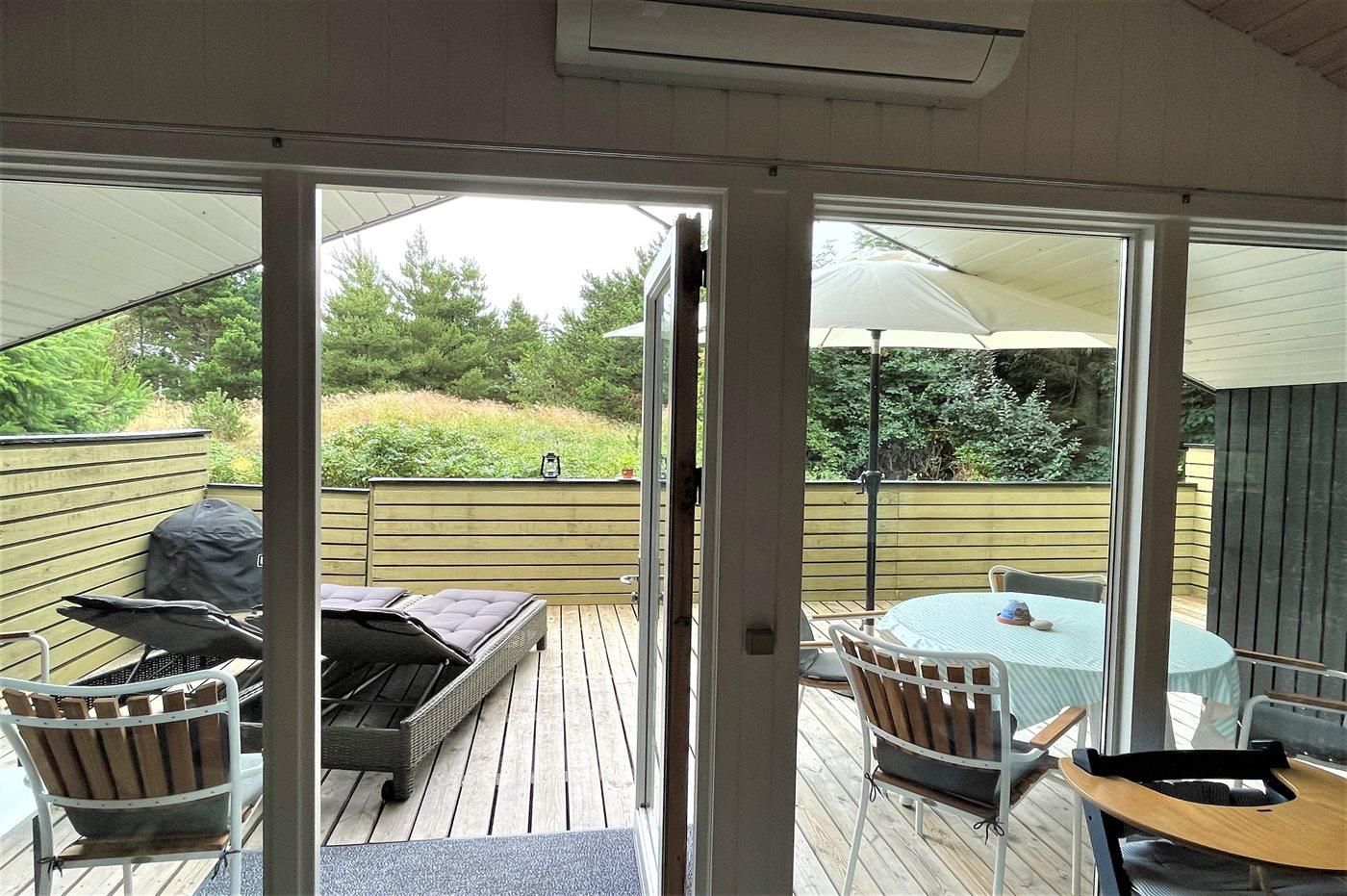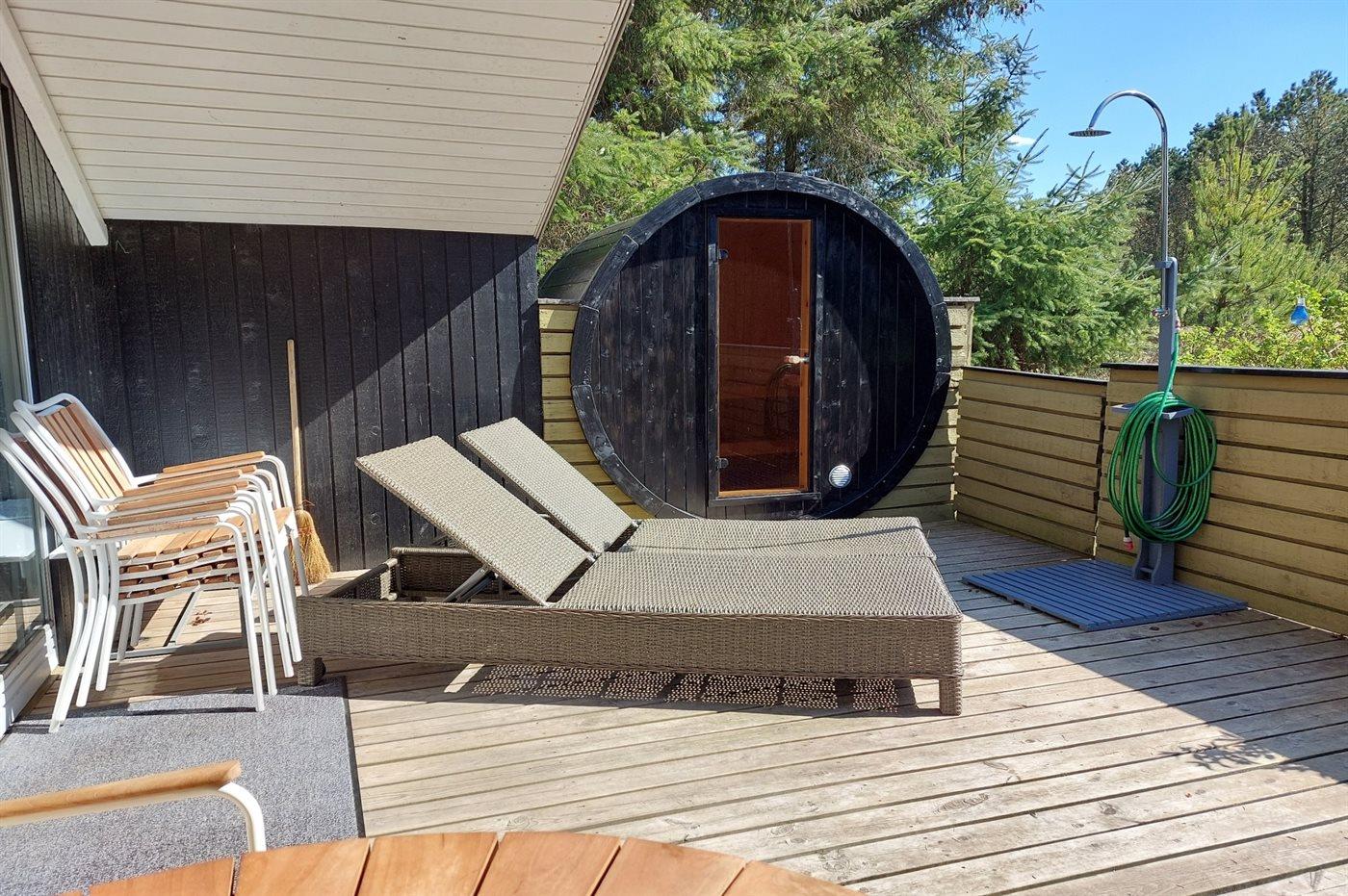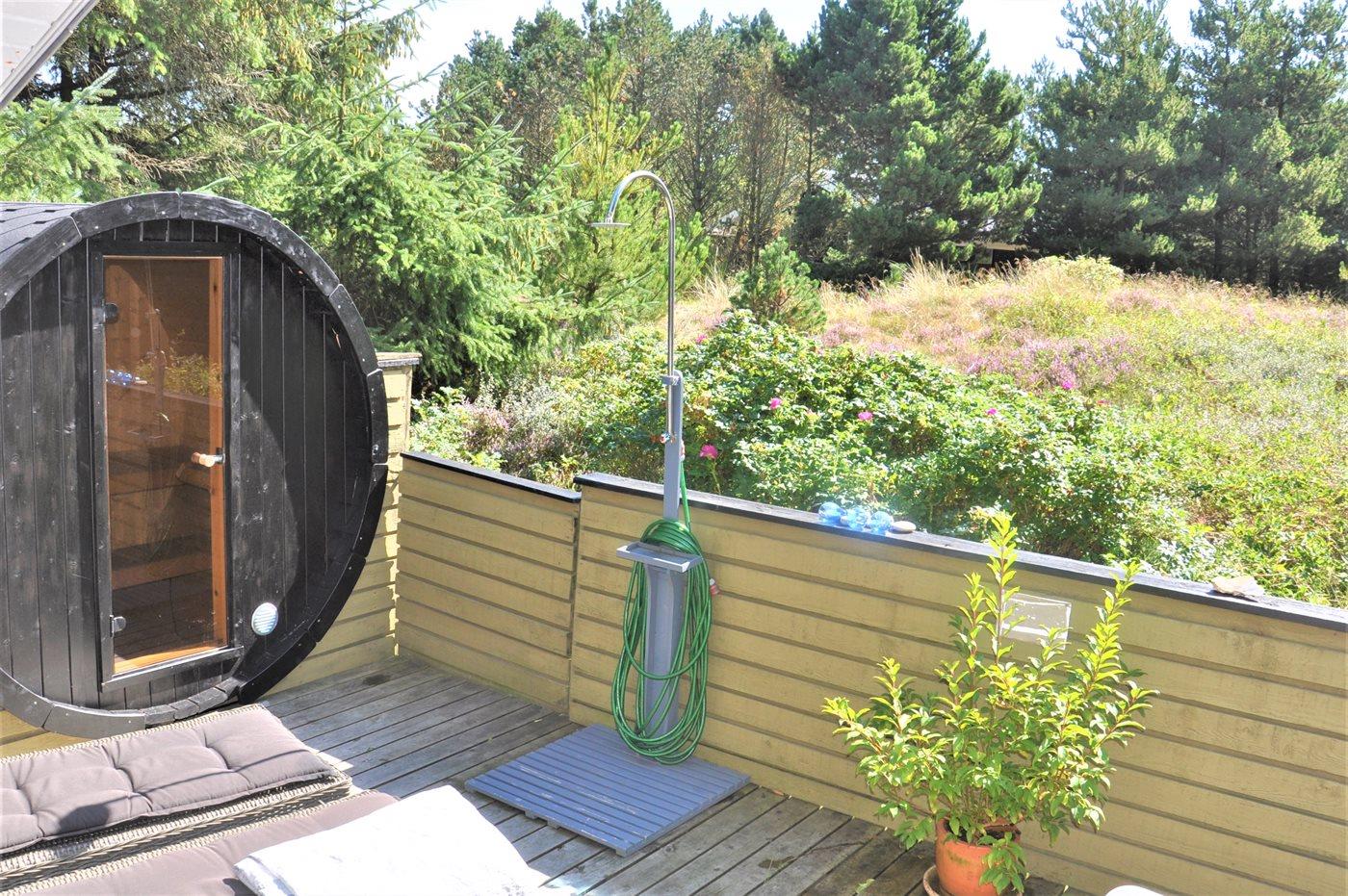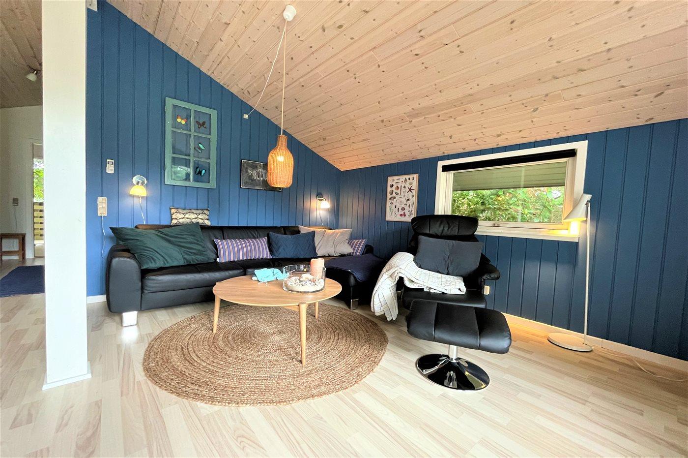 Ferieboligen er beliggende på en 1211 m² stor naturgrund. Der er 1100 m til havet. Der er 575 m til fjorden. Nærmeste forretning er beliggende i en afstand af 300 m. Til ferieboligen hører 30 m² terrasseareal. Desuden er der 12 m² overdækket terrasse. Sandkasse. Udendørs sauna. Parkering ved ferieboligen.