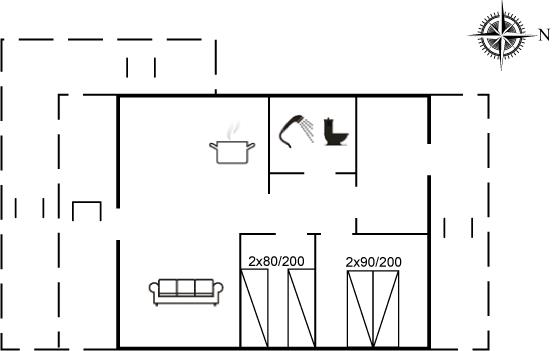 Der er i alt 2 soveværelser. Sovepladserne fordeler sig på: 2 sovepladser i dobbeltseng. 2 sovepladser i enkeltsenge. Derudover er der 1 stk. barneseng.