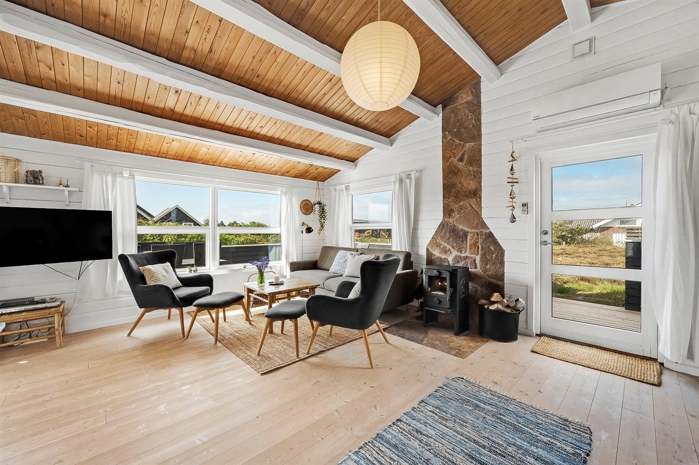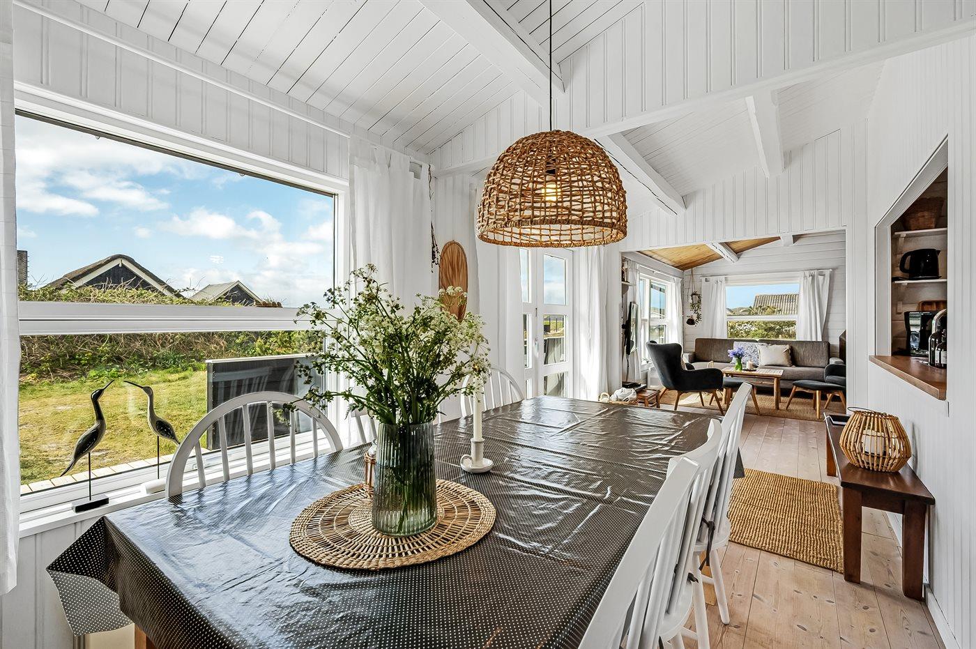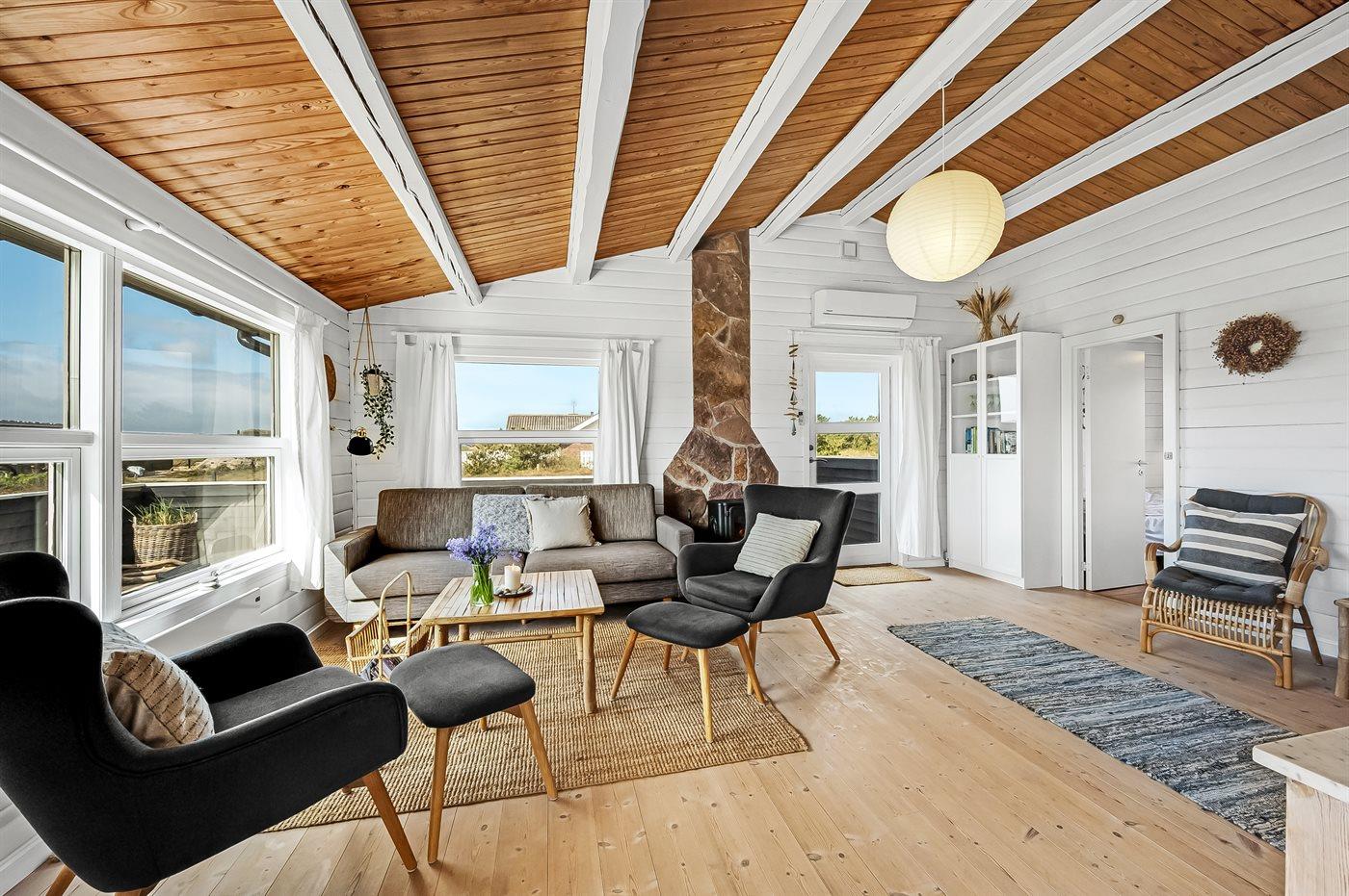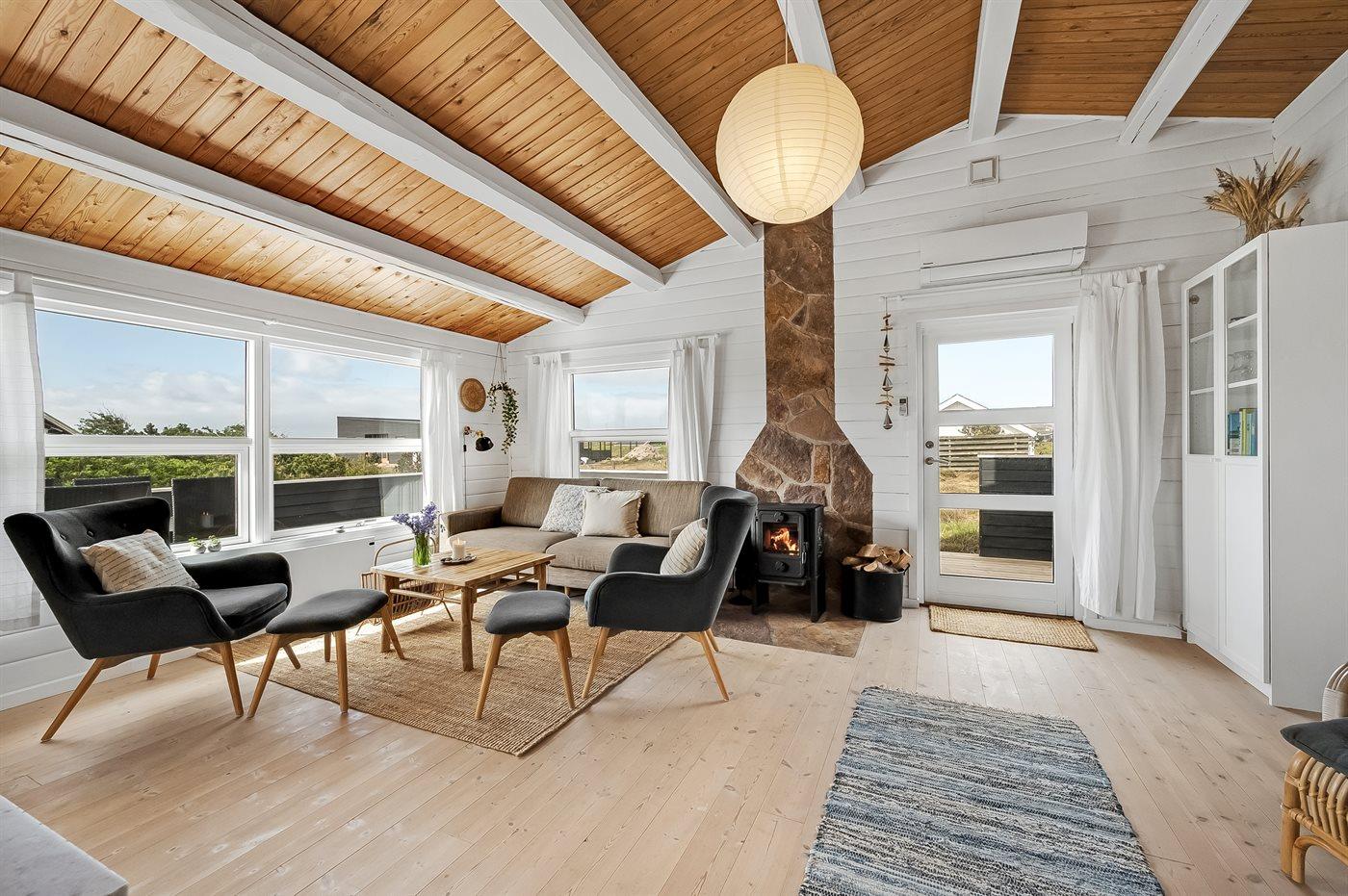 Et velbeliggende og lyst indrettet sommerhus - løbende renoveret. Huset har en attraktiv beliggenhed på en klitgrund, tæt ved store åbne arealer, stranden og klitterne. Til huset hører et stort, åbent terrasseareal med havemøbler.
