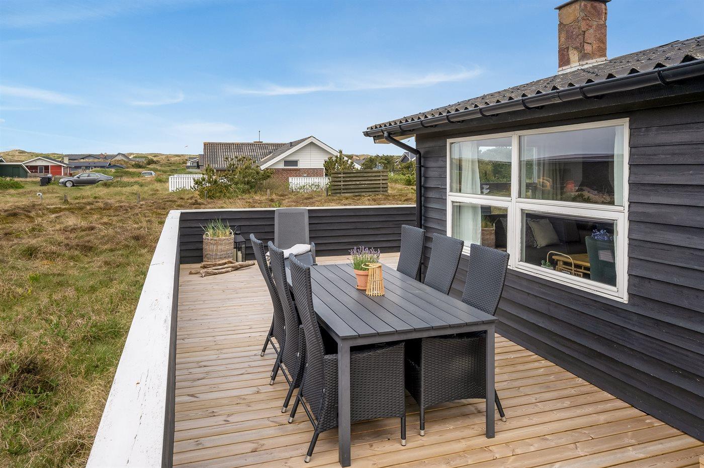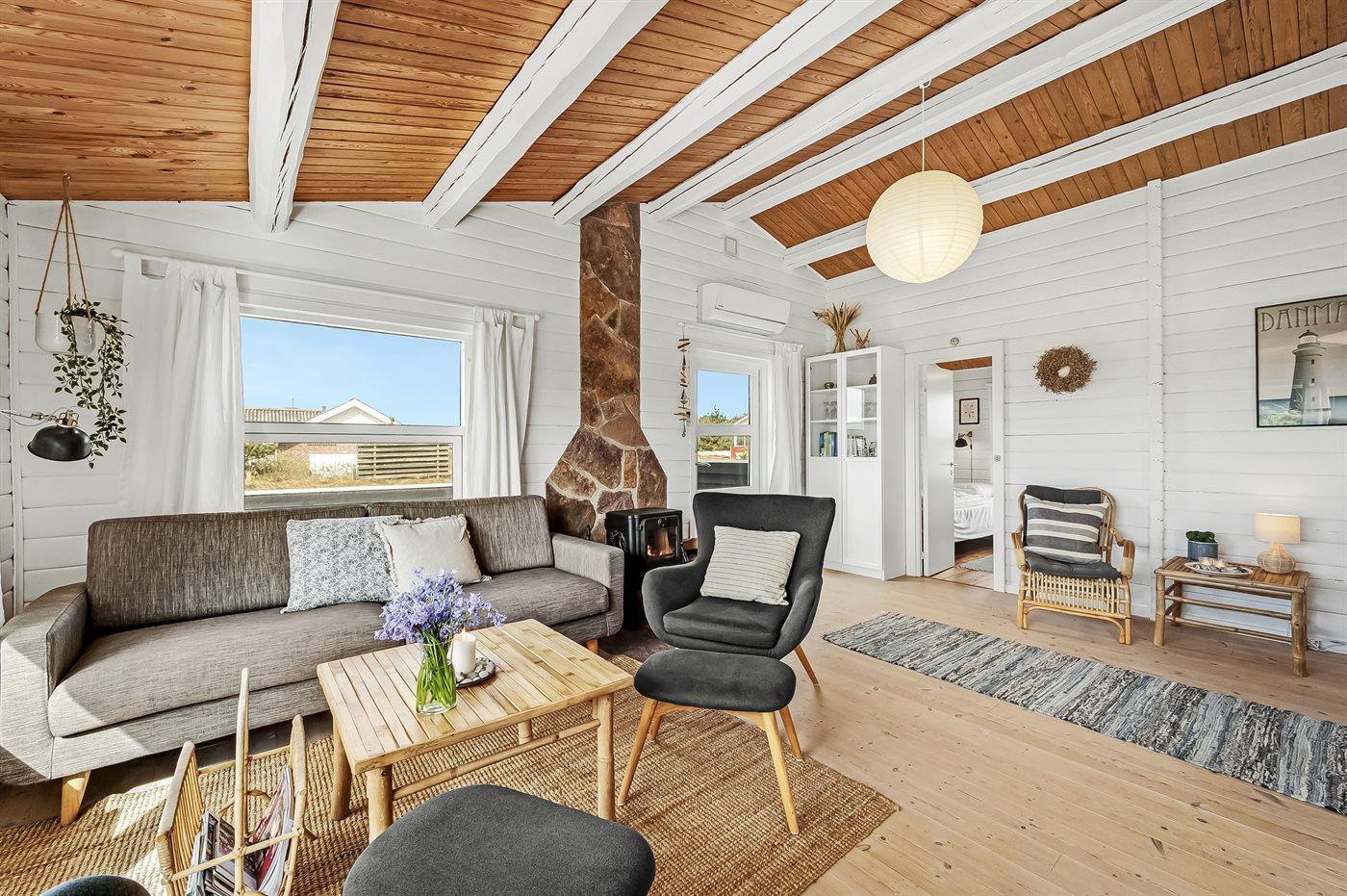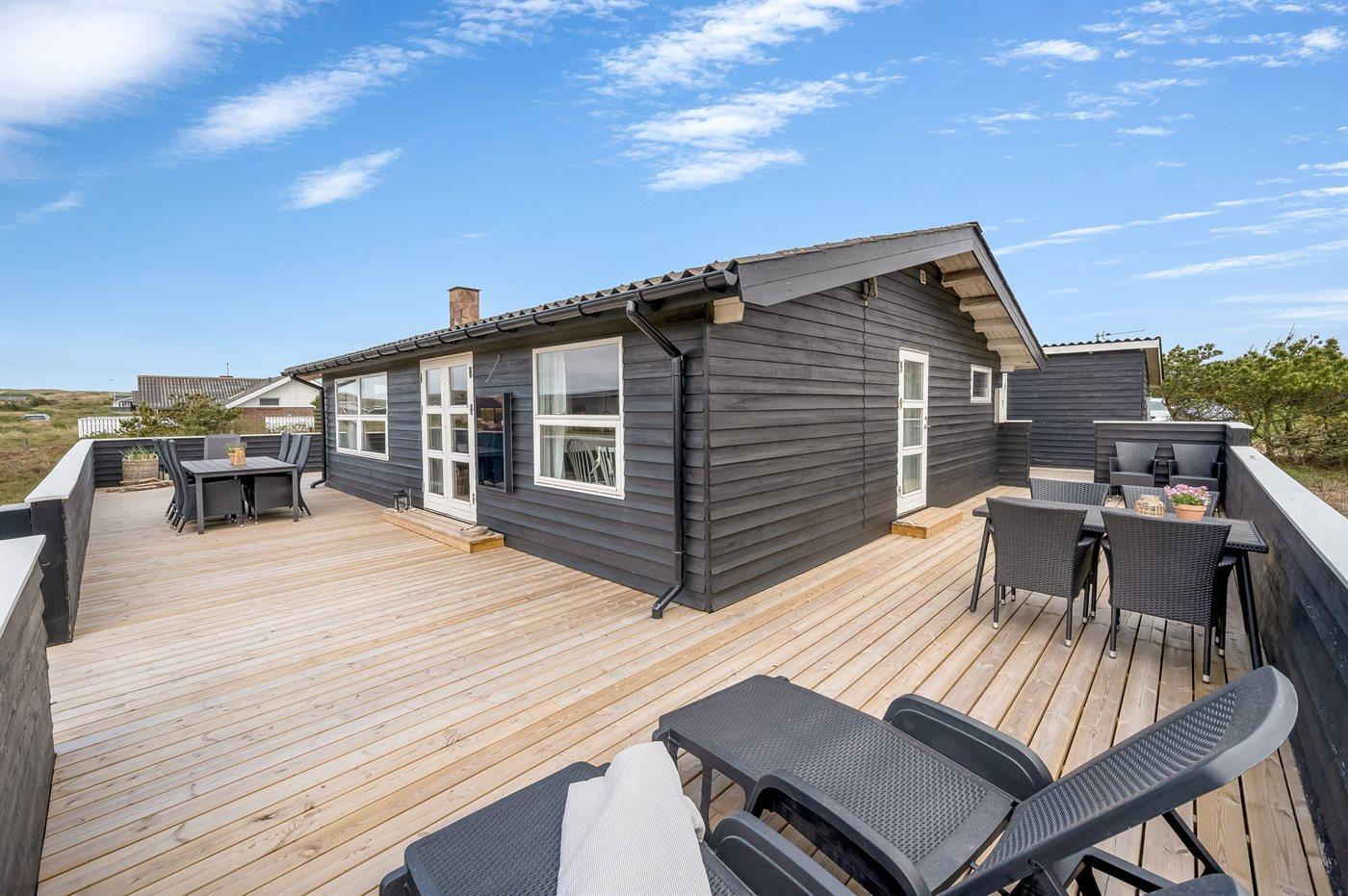 Et velbeliggende og lyst indrettet sommerhus - løbende renoveret. Huset har en attraktiv beliggenhed på en klitgrund, tæt ved store åbne arealer, stranden og klitterne. Til huset hører et stort, åbent terrasseareal med havemøbler.