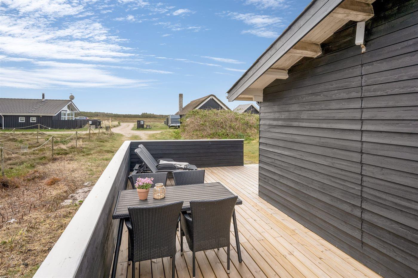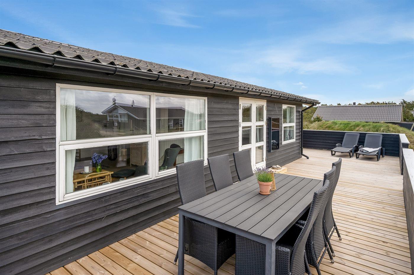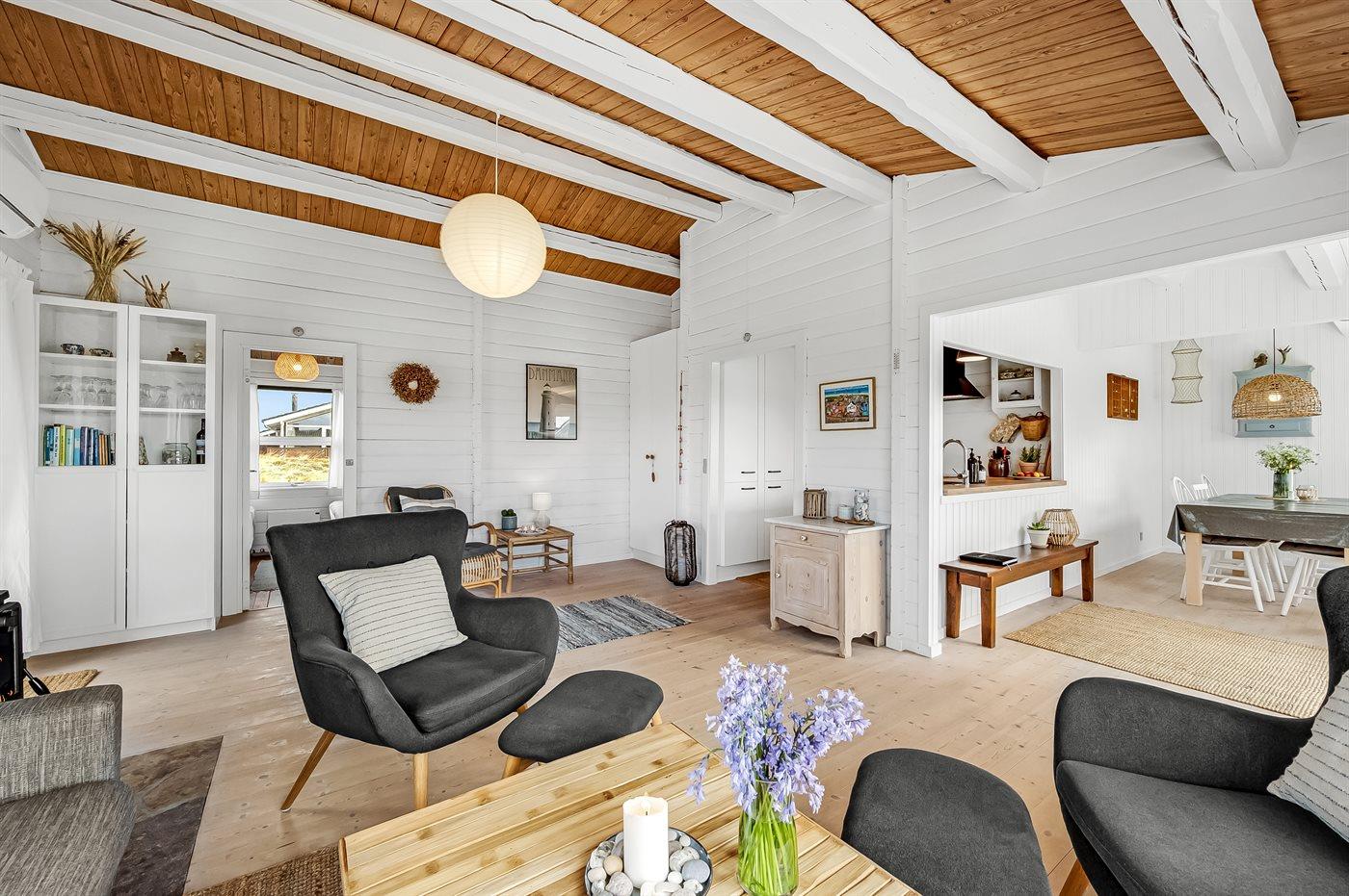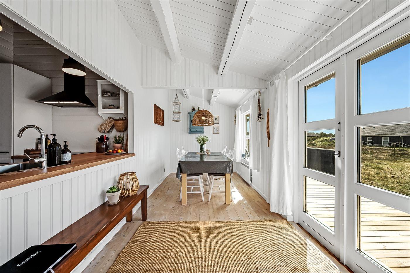 Et velbeliggende og lyst indrettet sommerhus - løbende renoveret. Huset har en attraktiv beliggenhed på en klitgrund, tæt ved store åbne arealer, stranden og klitterne. Til huset hører et stort, åbent terrasseareal med havemøbler.