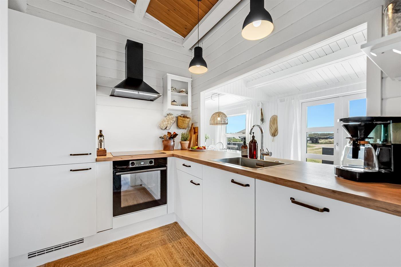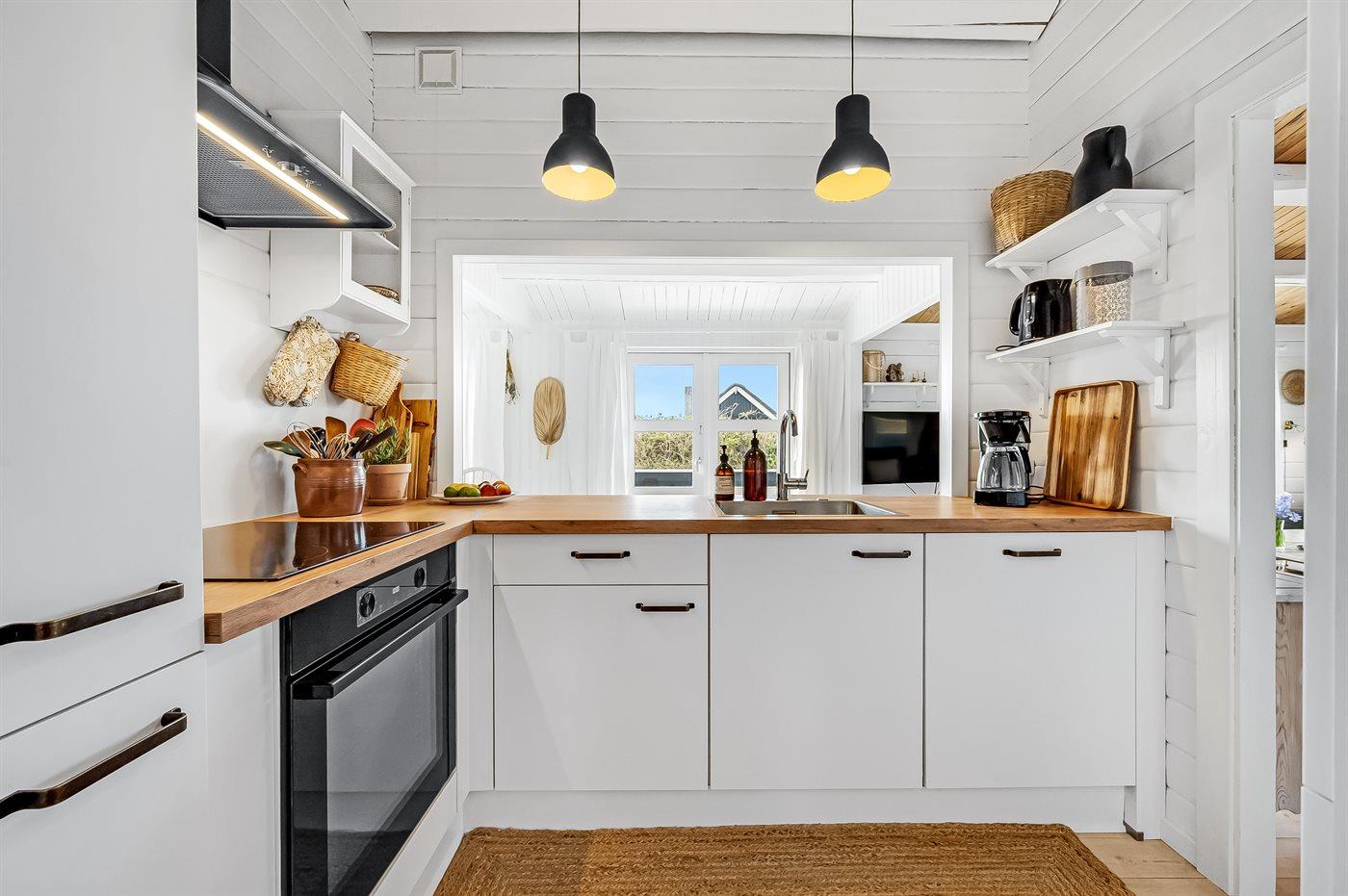 Køkkenet er udstyret med 1 køleskab. Der er 4 induktionskogeplader, varmluftovn samt opvaskemaskine.