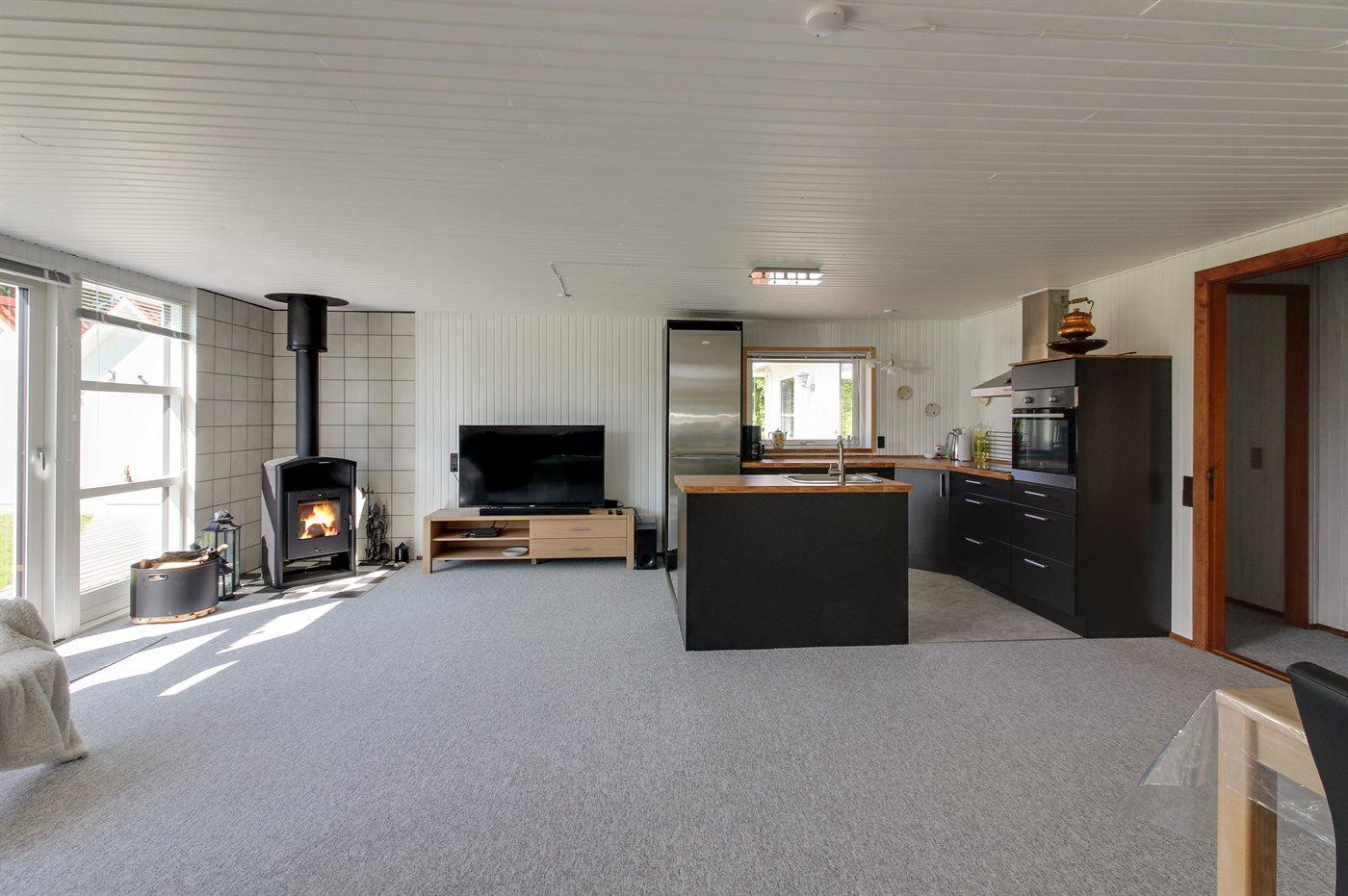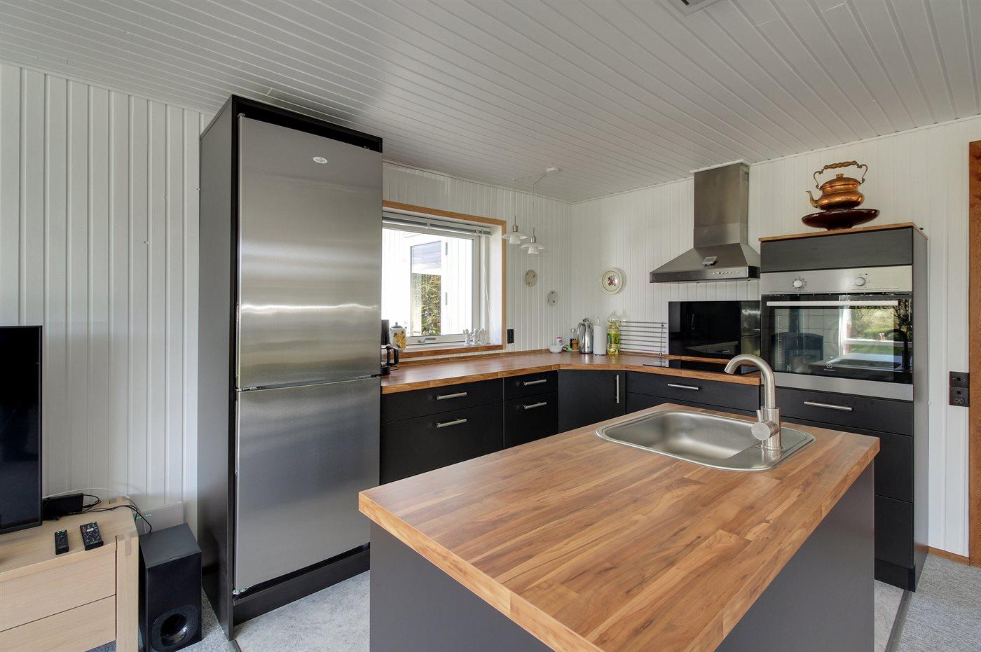 Køkkenet er udstyret med 1 køleskab. Der er 4 induktionskogeplader, varmluftovn, mikrobølgeovn samt opvaskemaskine.