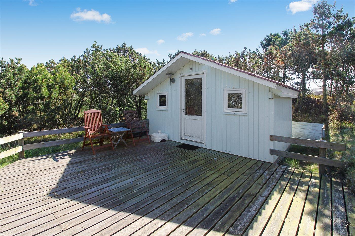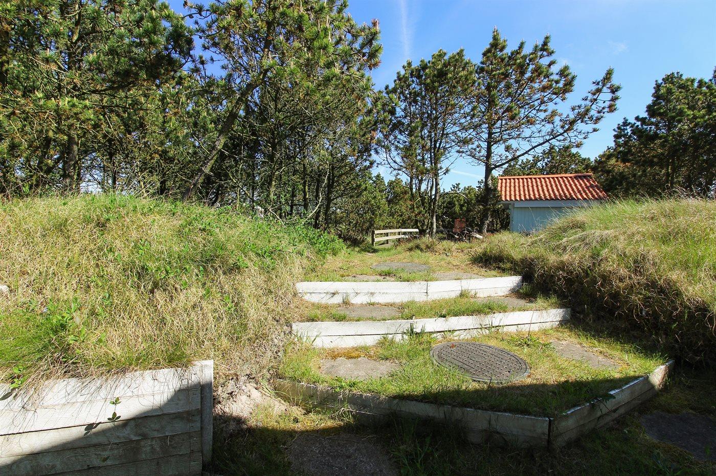 Ferieboligen er beliggende på en 1436 m² stor naturgrund. Der er 800 m til havet. Der er 600 m til fjorden. Nærmeste forretning er beliggende i en afstand af 500 m. Til ferieboligen hører 80 m² terrasseareal. Desuden er der 21 m² overdækket terrasse. Solvogne med hynder. Der er redskabsrum. Sandkasse. Grill til rådighed. Parkering ved ferieboligen.