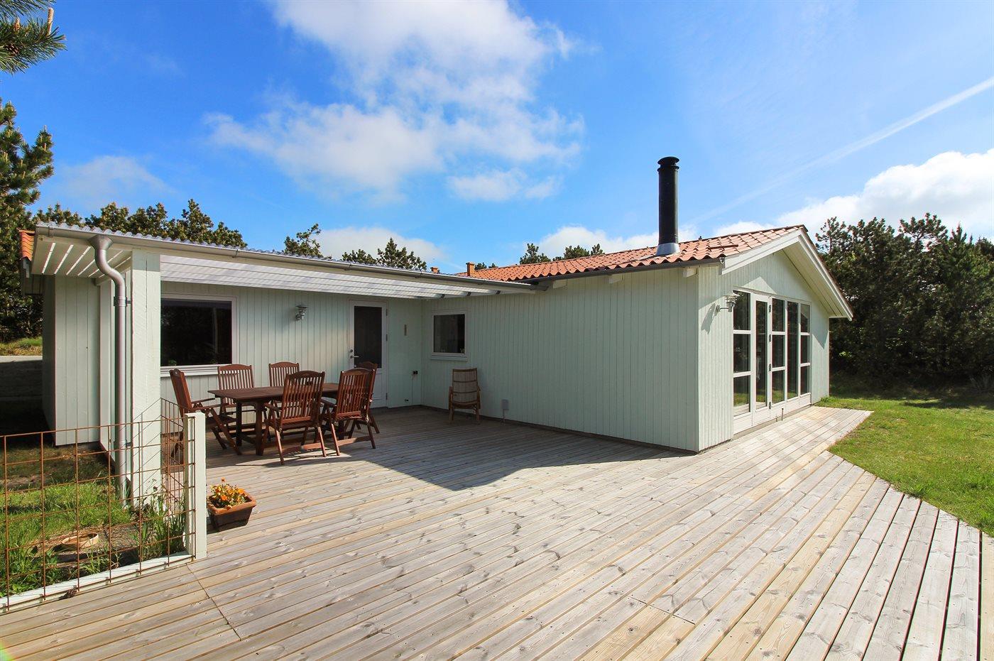 Hyggeligt sommerhus tæt på Vesterhavet med stor terrasse og moderne faciliteter i Hvide Sande.