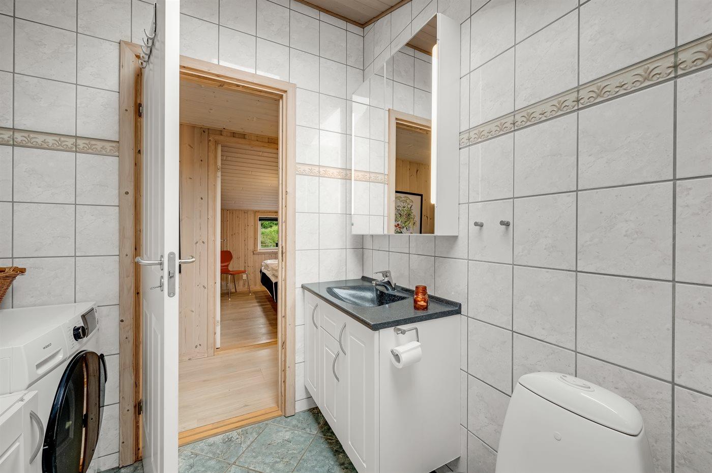 Ferieboligen er beliggende på en 1202 m² stor naturgrund. Der er 800 m til havet. Der er 500 m til fjorden. Nærmeste forretning er beliggende i en afstand af 150 m. Til ferieboligen hører 75 m² terrasseareal. Desuden er der 40 m² overdækket terrasse. Grill til rådighed. Parkering ved ferieboligen.