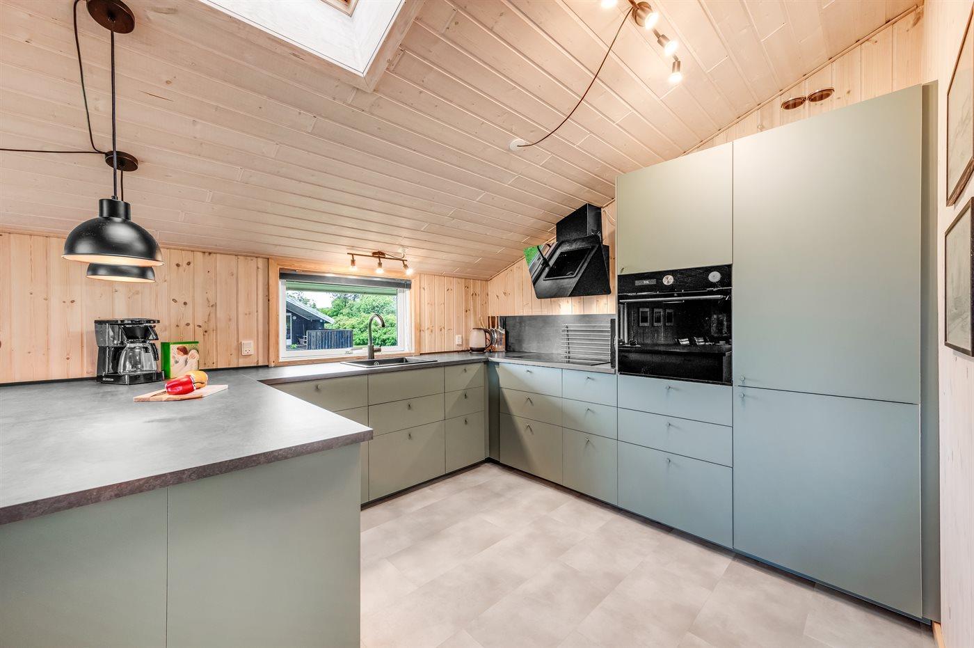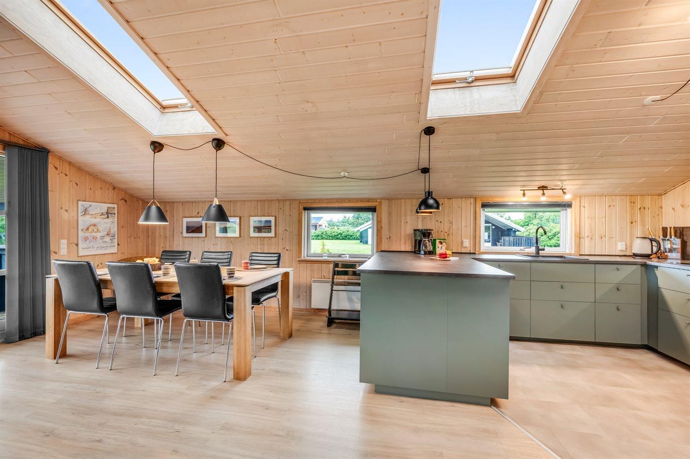 Køkkenet er udstyret med 1 køleskab. Der er 4 induktionskogeplader, varmluftovn, mikrobølgeovn samt opvaskemaskine.