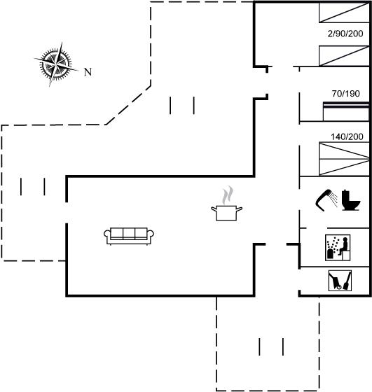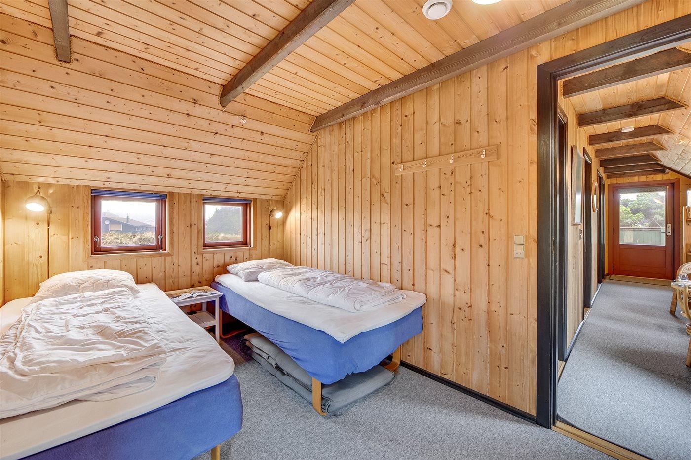 Der er i alt 3 soveværelser. Sovepladserne fordeler sig på: 2 sovepladser i dobbeltseng. 2 sovepladser i enkeltsenge. 2 sovepladser i køjeseng.