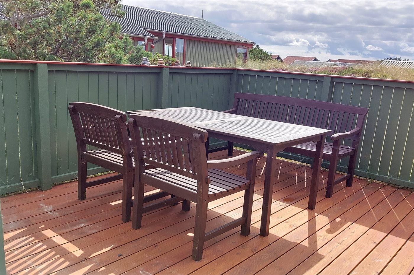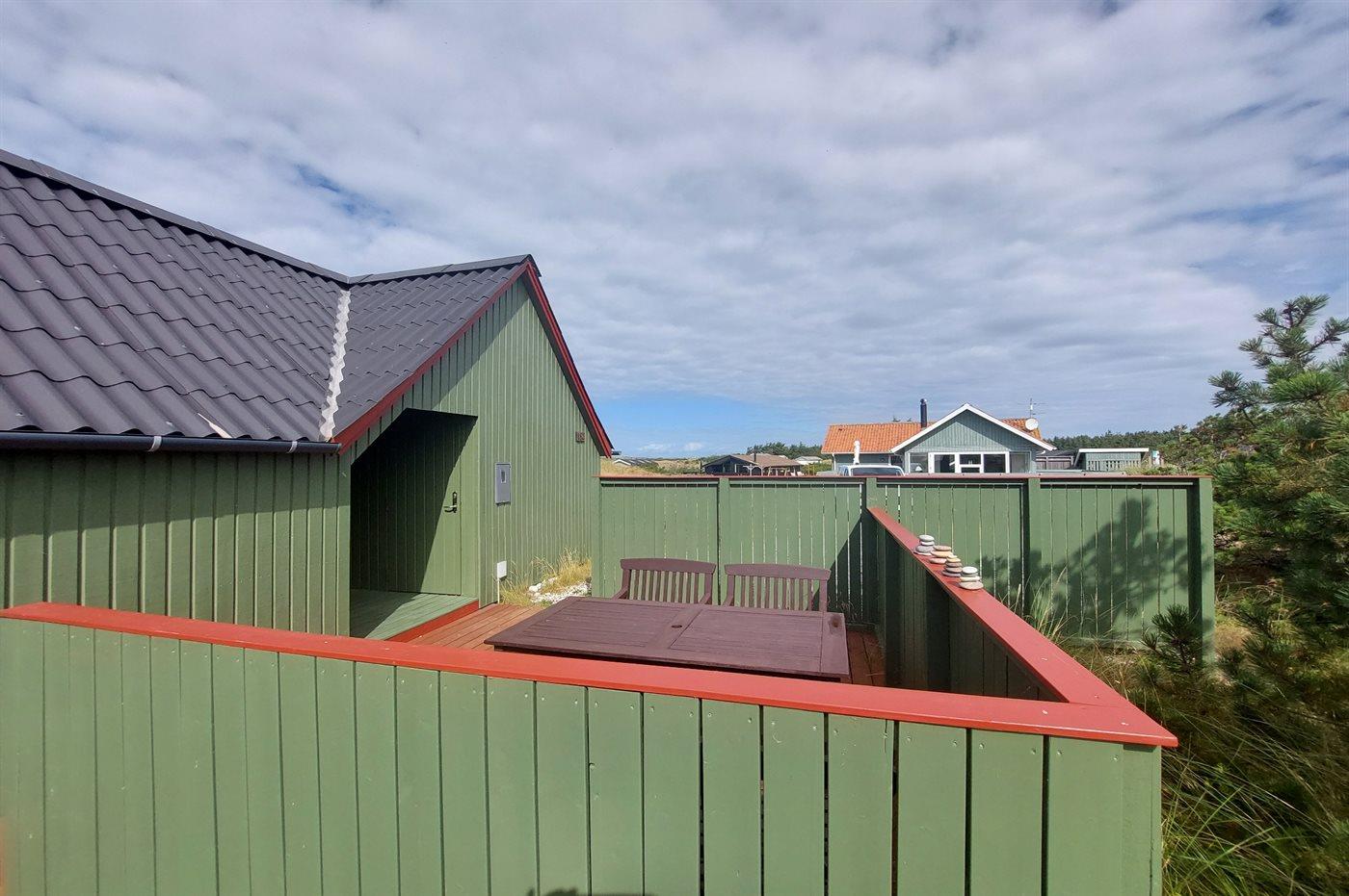 Hyggeligt sommerhus med lukket terrasse og udsigt til klitterne nær Hvide Sande.