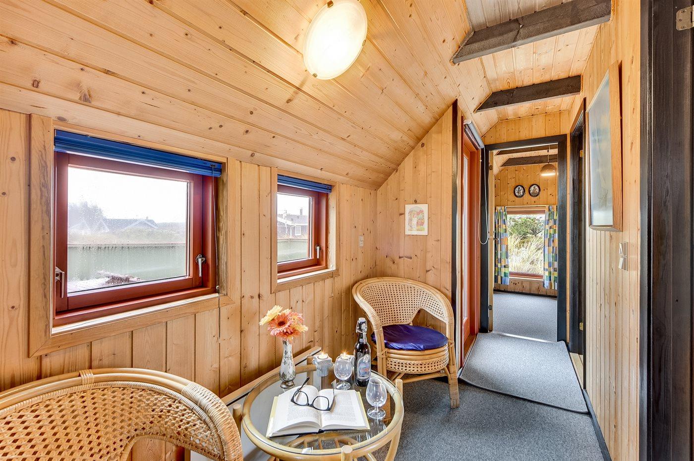Et hyggeligt ældre sommerhus, med dejlig lukket terrasse, udsigt til klitterne og med kort afstand til vandet.