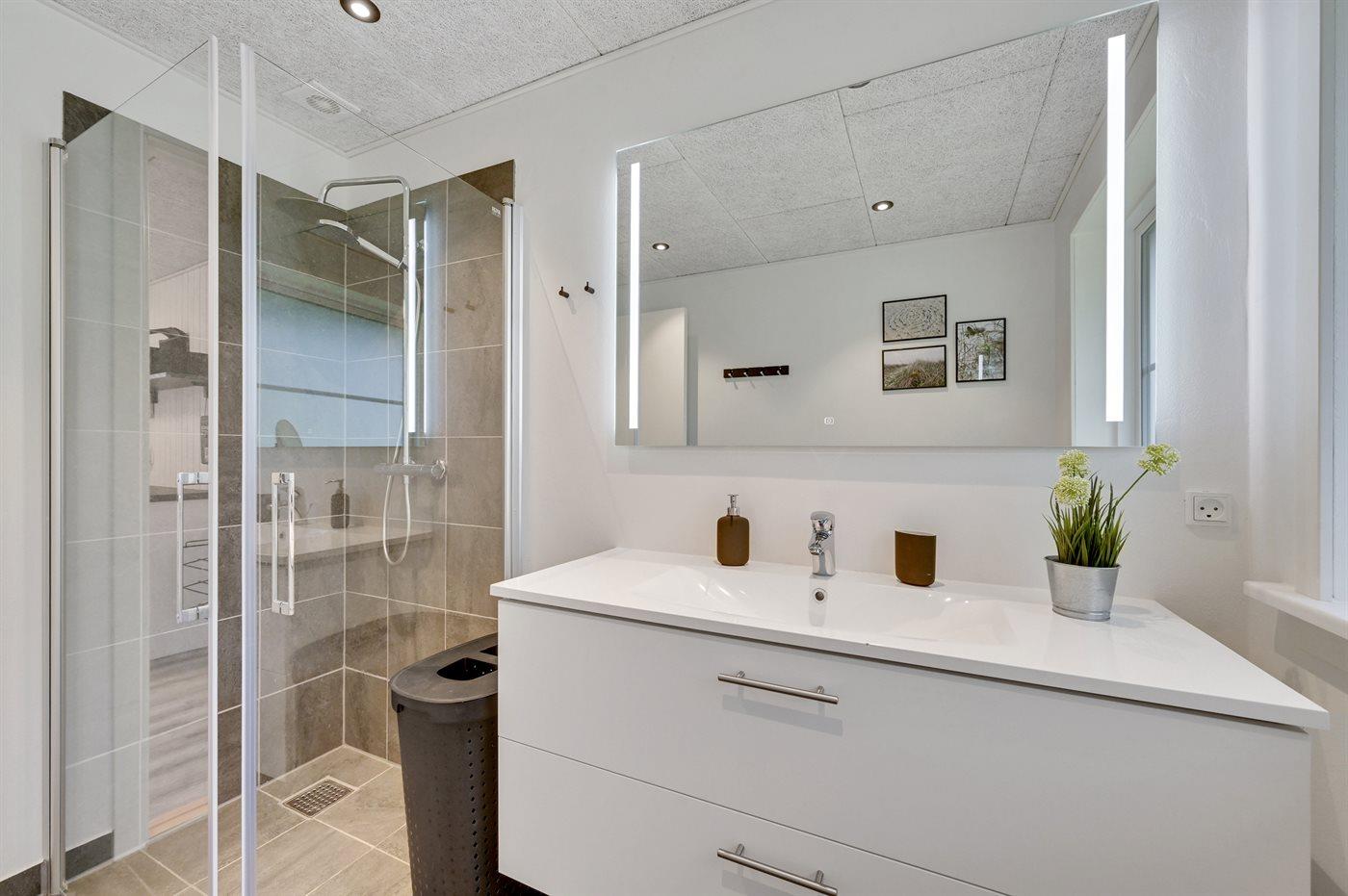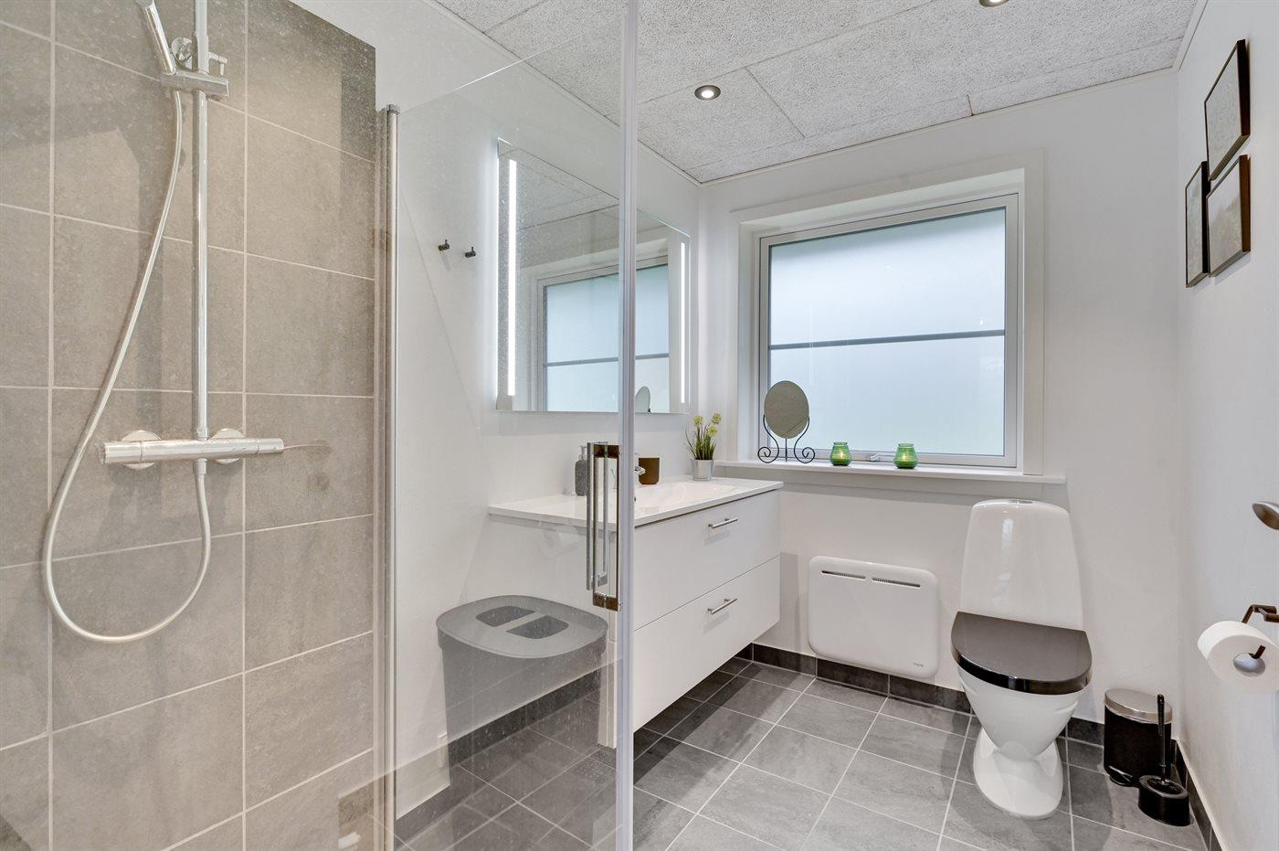 Der er 1 badeværelse med bruseniche og 1 toilet.. Der er gulvvarme på 1 badeværelse.
