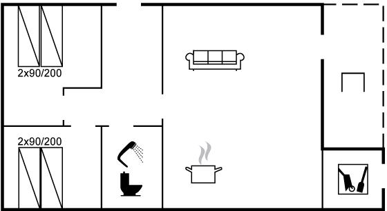 Der er i alt 2 soveværelser. Sovepladserne fordeler sig på: 4 sovepladser i dobbeltsenge.