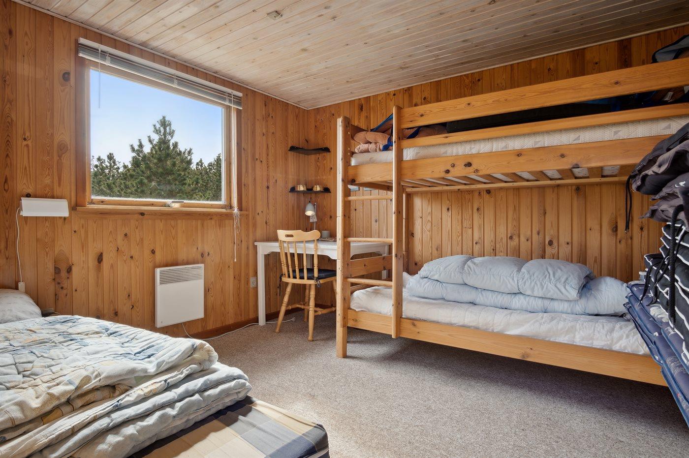 Der er i alt 3 soveværelser. Sovepladserne fordeler sig på: 4 sovepladser i dobbeltsenge. 1 soveplads i enkeltseng. 2 sovepladser i køjeseng. 3 af disse sovepladser befinder sig i et anneks.