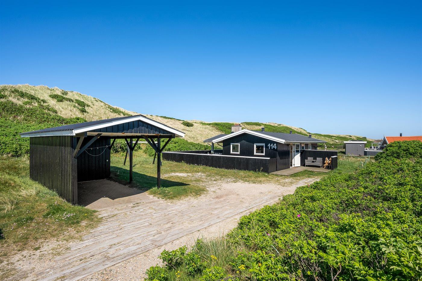Ferieboligen er beliggende på en 1208 m² stor klitgrund. Der er 50 m til havet. Nærmeste forretning er beliggende i en afstand af 1300 m. Til ferieboligen hører åbent terrasseareal. Desuden er der overdækket terrasse. Gynge. Der er carport til rådighed. Parkering ved ferieboligen.