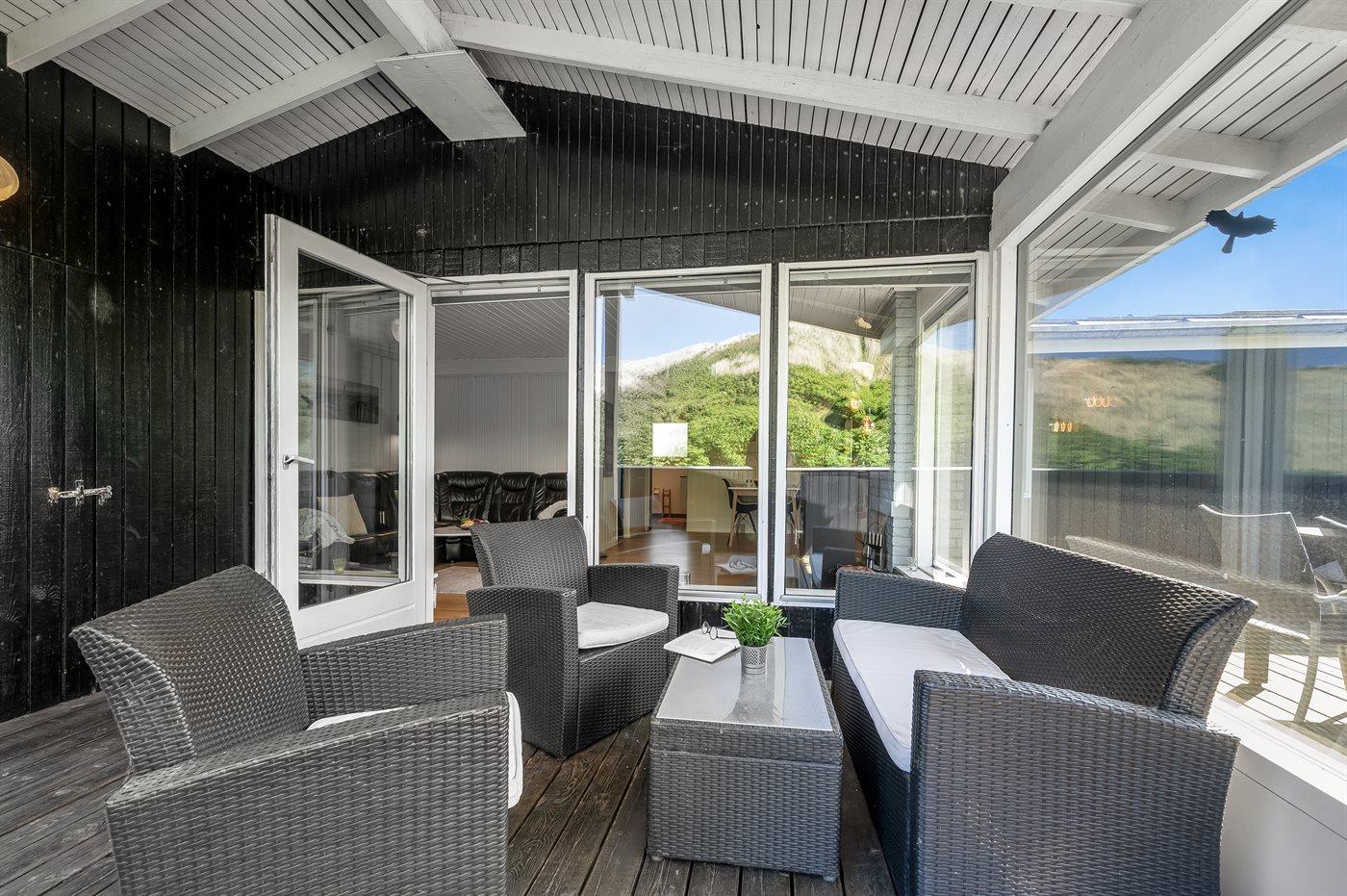 Dette super hyggelige sommerhus har en helt unik beliggenhed i yderste klitrække kun 50 m fra Vesterhavet. På den sydvendt terrasse kan du nyde udsigten til det smukke klitlandskab, alt imens du kan lytte til Vesterhavets brusen, og da terrassen er lukket, kan børn og hunde frit boltre sig. Dette sommerhus har de perfekte rammer til ren afslapning og opladning.