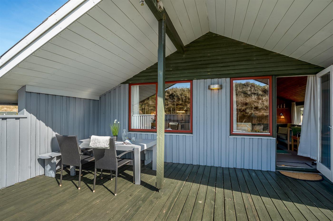 Hyggeligt sommerhus tæt på Vesterhavet med overdækket terrasse og skønt klitlandskab i Bjerregård.