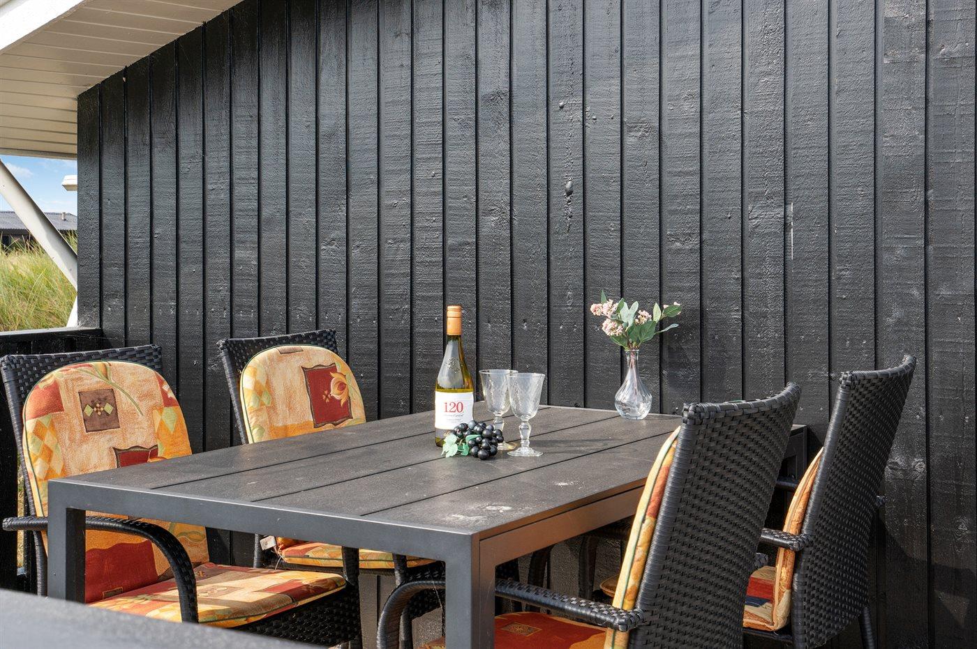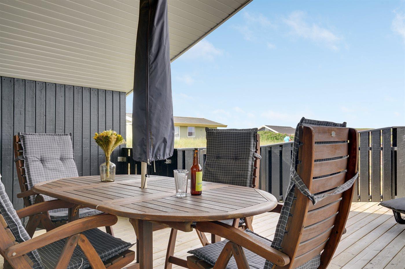 Ferieboligen er beliggende på en 1206 m² stor naturgrund. Der er 500 m til havet. Der er 3000 m til fjorden. Nærmeste forretning er beliggende i en afstand af 2500 m. Til ferieboligen hører 40 m² terrasseareal. Desuden er der 20 m² overdækket terrasse. Gynge. Grill til rådighed. Parkering ved ferieboligen.