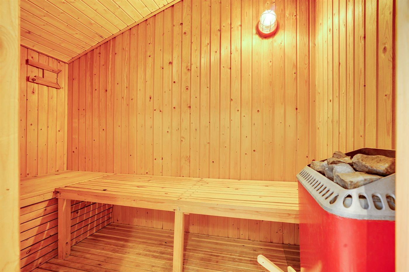 Der er 1 badeværelse med bruseniche og 1 toilet.. Der er gulvvarme på 1 badeværelse. I saunaen er der mulighed for afslapning.
