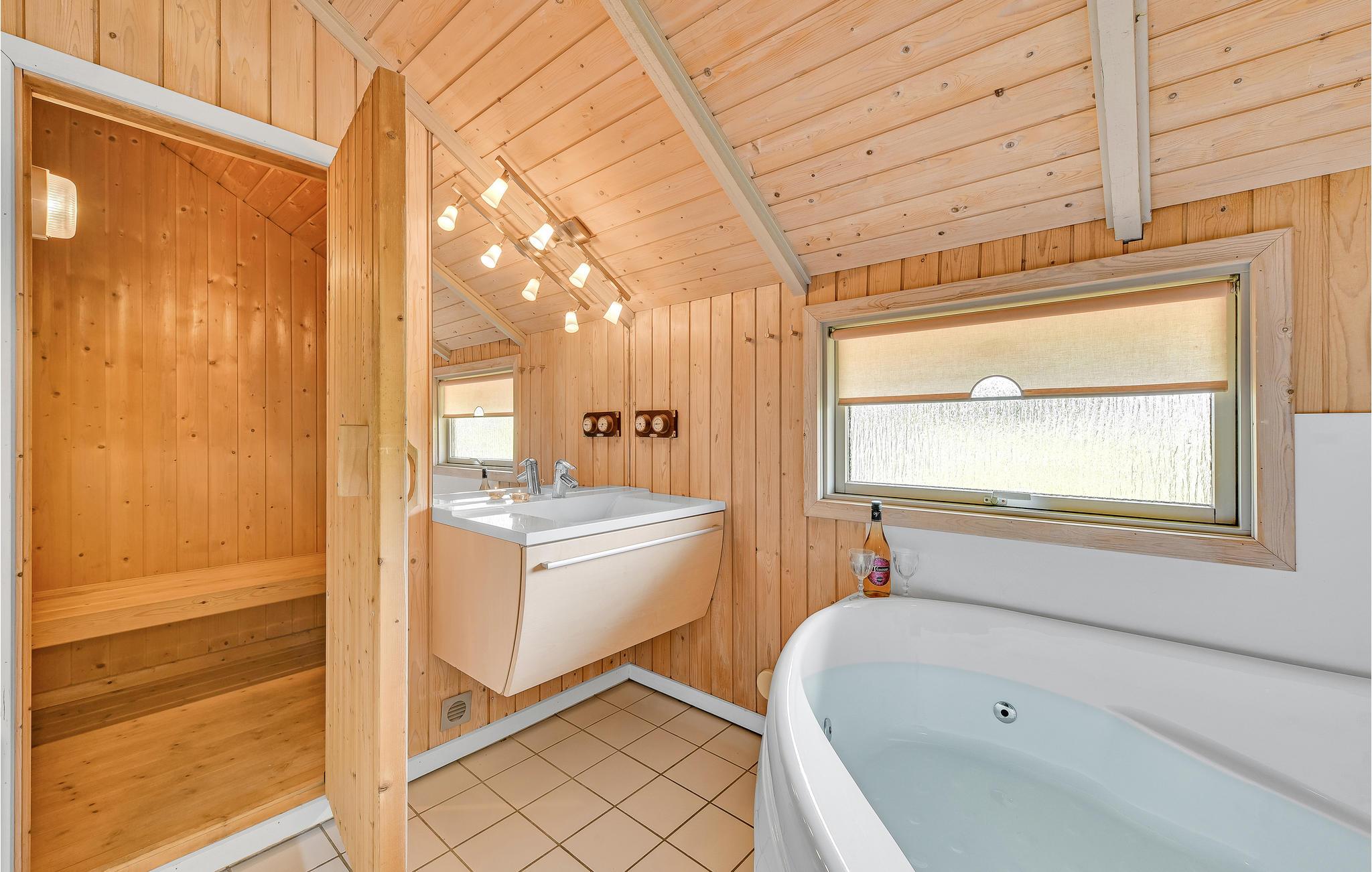 Tilbring en uforglemmelig ferie med familie eller venner i dette smukke feriehus, der med sine tre soveværelser og ene badeværelse tilbyder god plads. I har også glæde af en hyggelig, åben stue med åbent køkken. Slap af her efter en lang dag foran brændeovnen eller med en hyggelig filmaften. Et højdepunkt er saunaen og spabadet, som inviterer jer til at nyde skøn wellness.