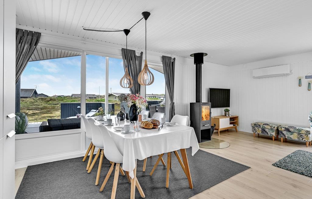 Lyst, moderne og charmerende indrettet sommerhus, der ligger på en naturgrund på landtangen mellem Ringkøbing Fjord og det brusende Vesterhav. Med kun få hundrede meter til stranden er dette hus ideelt for familien eller par, der ønsker at være midt i naturen, her kan havets brusen høres. Når I ankommer til huset, er det første, der møder jer, den lille skønne østvendte terrasse, ved husets indgang, hvor morgensolen kan nydes ved det lille cafébord og i loungemøblerne.
