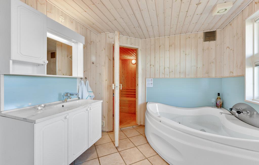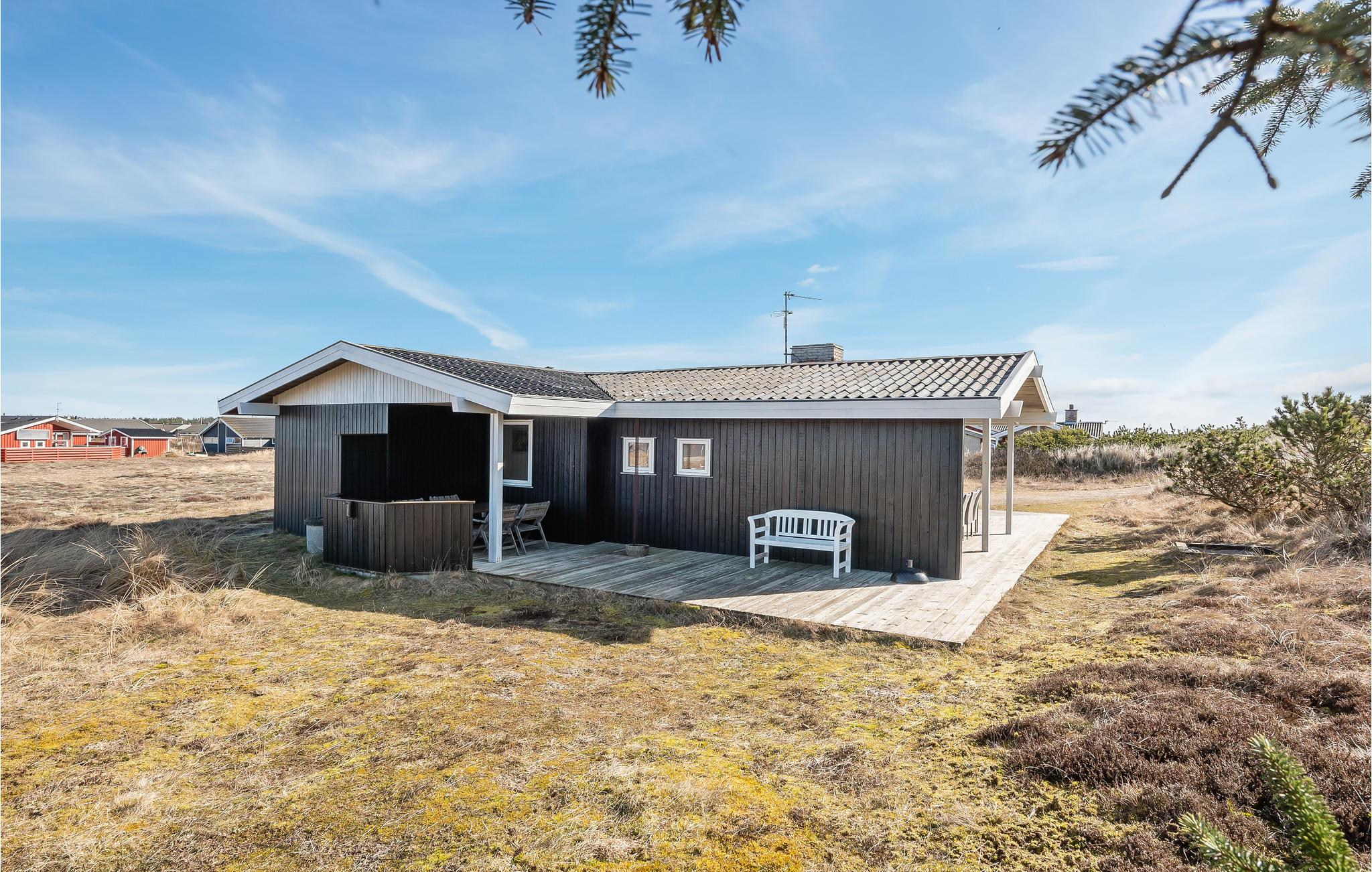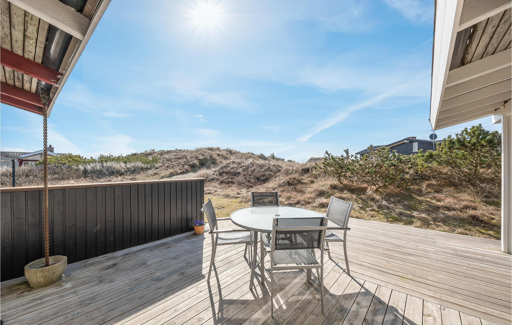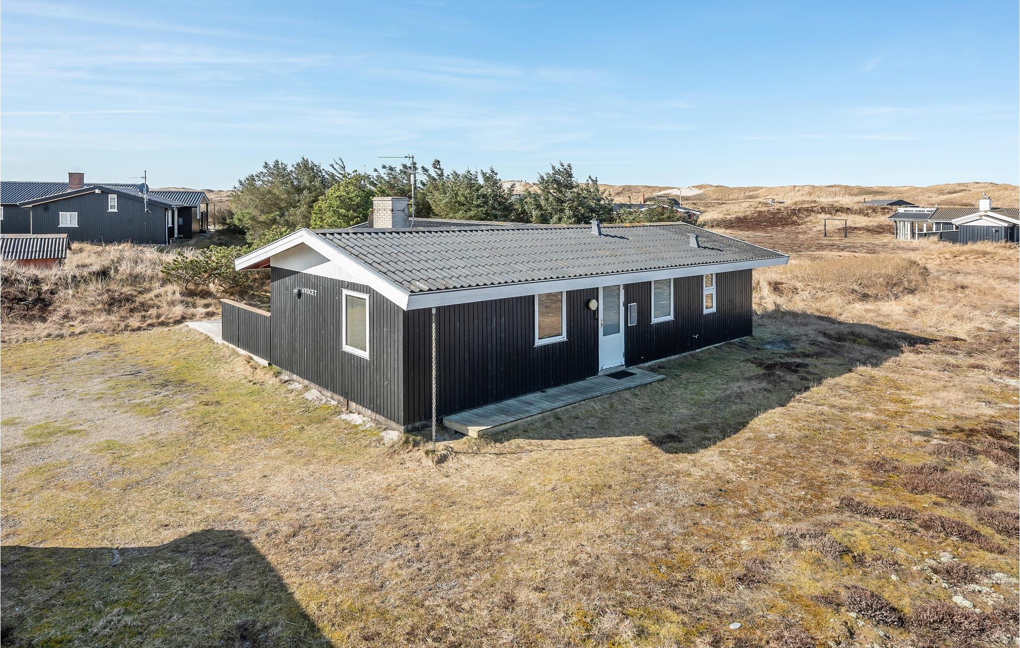 Et hyggeligt feriehus kun 350 m fra det skønne Vesterhav med brede sandstrande, masser af frisk luft og højt til loftet. Nyd en skøn ferie i dette fine feriehus, som løbende moderniseres og vedligeholdes. Beliggenheden er dejlig uforstyrret, og ved huset findes en dejlig stor terrasse og god plads til udendørs liv. Indendørs har huset en dejlig indretning med køkken, spisestue og stue i forlængelse af hinanden. I stuen kan I tænde op i pejsen, og nyde varmen og ildens hyggelige knitren. Desuden tre gode soveværelser og et stort badeværelse med sauna og spabad.