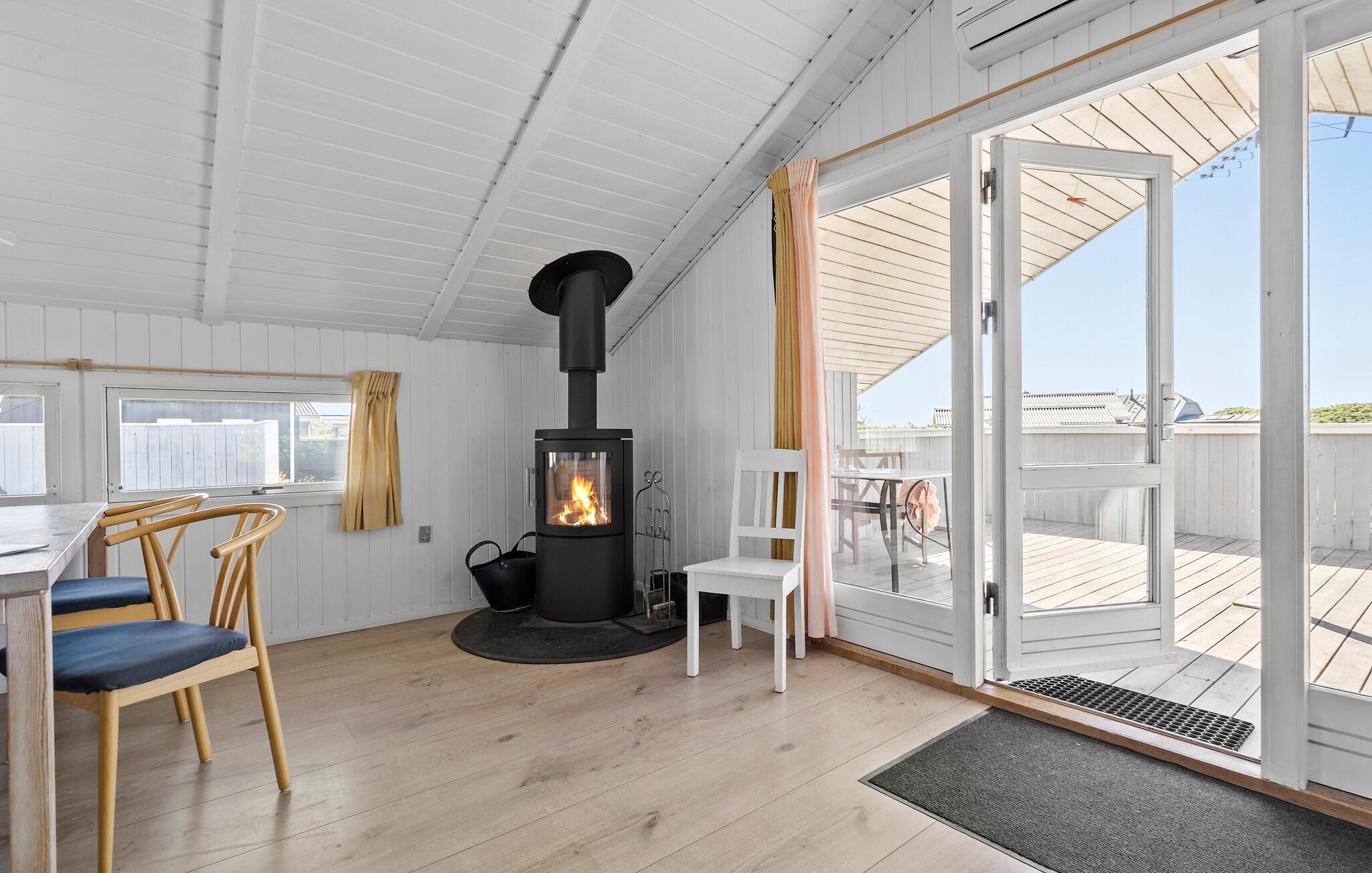 Hyggeligt feriehus kun 300 m fra Vesterhavet med terrasse, brændeovn og moderne faciliteter i rolige omgivelser.
