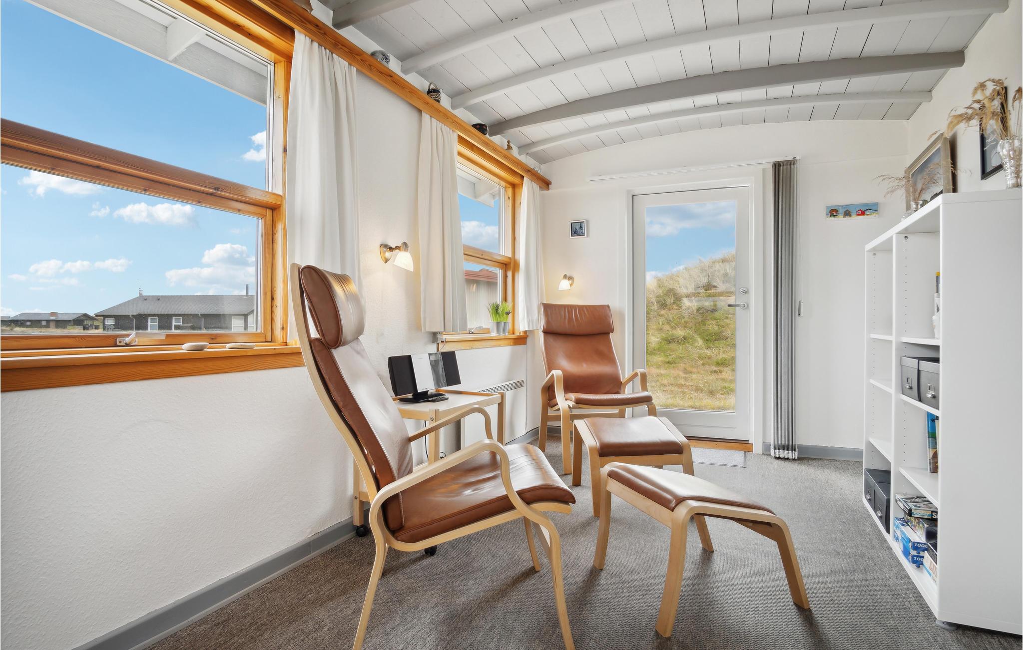 Bo kun 200 meter fra det brusende Vesterhav, så tæt på at I kan høre bølgerne slå mod kysten, i et hyggeligt og velholdt sommerhus der ligger på en dejlig naturgrund, heller ikke langt fra Ringkøbing Fjord. Området her er meget populært blandt feriegæster, der sætter pris på at fiske, surfe, gå og cykle og nyde badelivet på den skønne brede sandstrand. Her kan I holde en dejlig familiefererie uanset årstid - også i for og eftersæson er naturen pragtfuld at opholde sig i.
