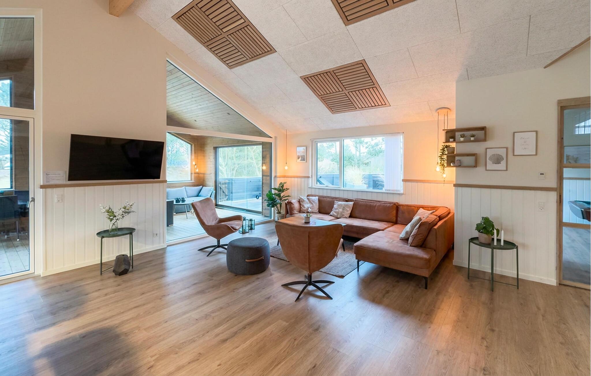 Glæd jer til jeres ferie i dette rummelige feriehus i rolige omgivelser med moderne udstyr og wellness.