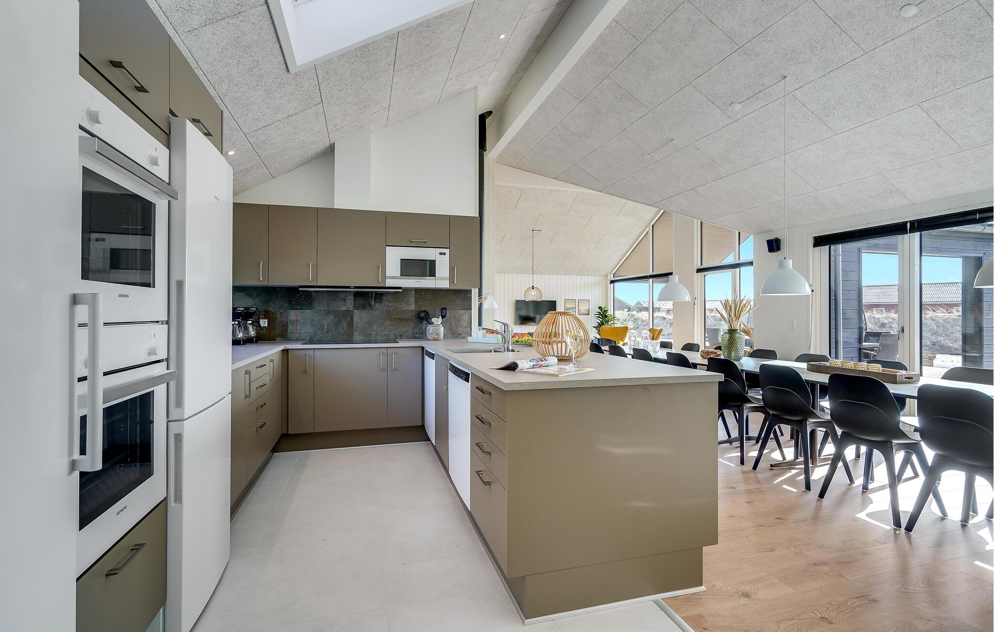 Det indre af dette sommerhus byder jer velkommen med et moderne design og rummelige, lyse værelser. Føl jer godt tilpas i den smagfuldt indrettede stue med en god film, spil billard, dart eller Playstation4 og udfordr jer selv ved bordfodboldbordet. Forkæl jer selv med afslappende timer i den indendørs pool eller sauna. Tilbered kulinariske delikatesser sammen i køkkenet af høj kvalitet.