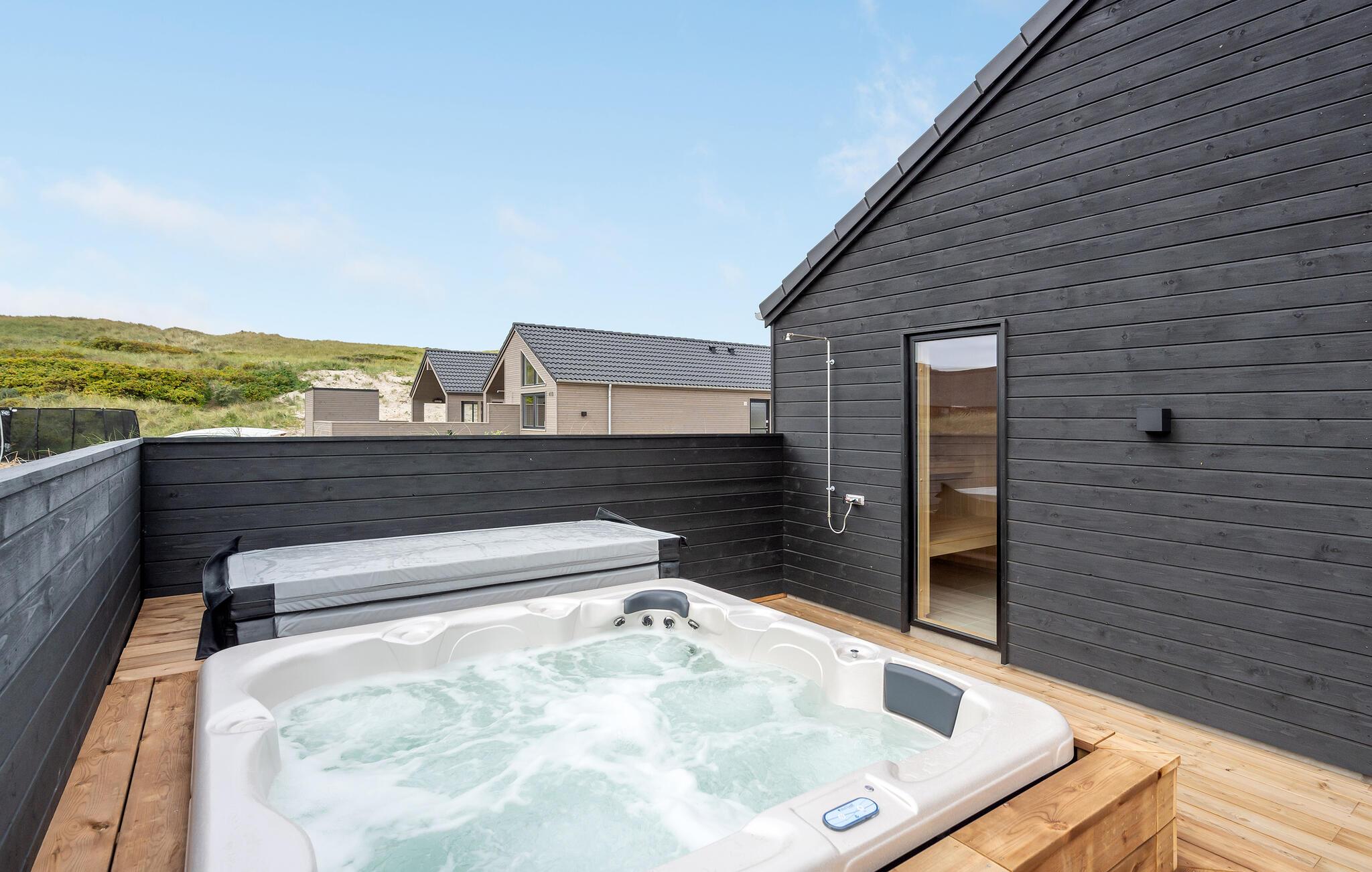 Moderne sommerhus med pool, sauna og stor terrasse nær Hvide Sande til en uforglemmelig ferie.