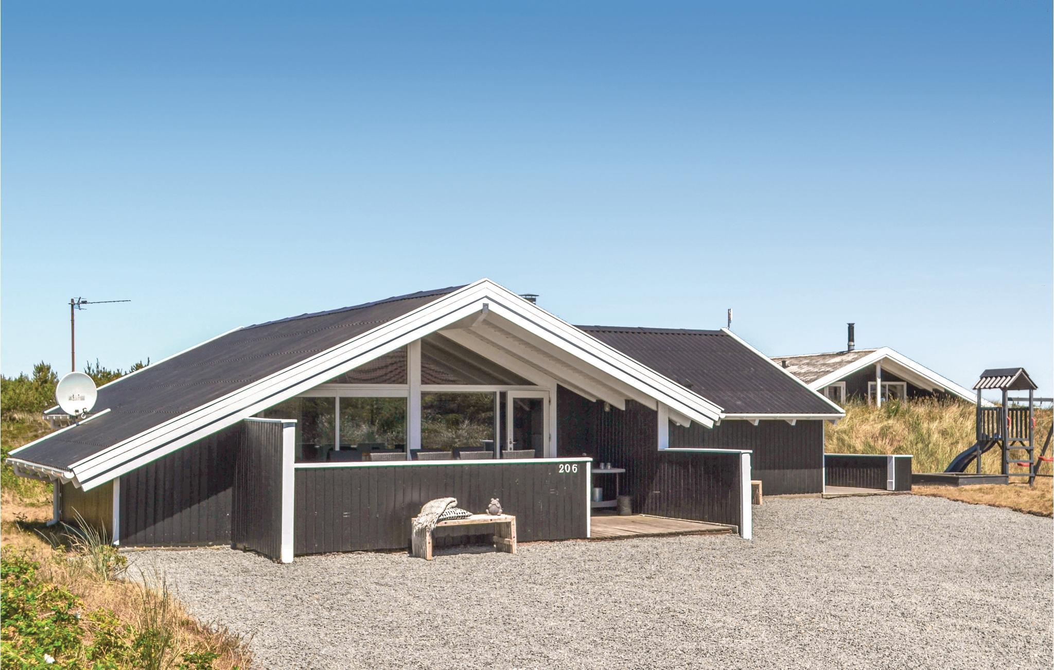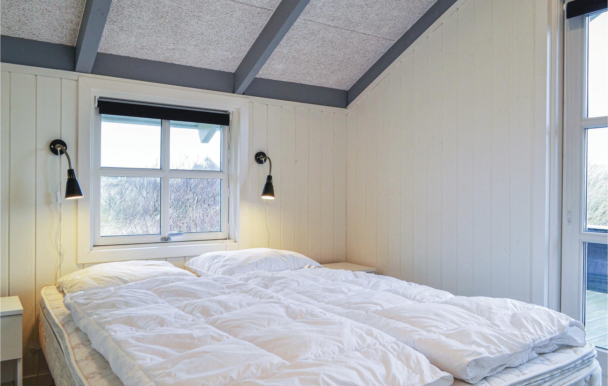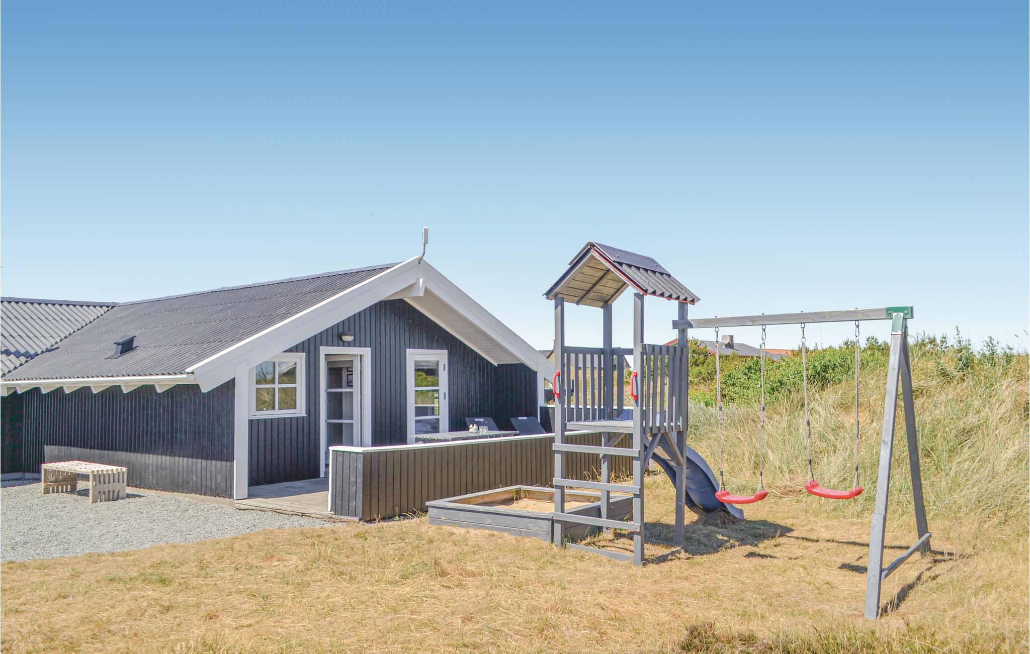 Et skønt, lyst og moderne indrettet feriehus, beliggende på en stor naturgrund, kun få minutters gang fra det på alle årstider fascinerende Vesterhav, de høje klitter og den brede, hvide sandstrand. Indretningen er smagfuldt med et flot og rummeligt køkken i åben forbindelse med spisestuen og tv-stuen. I stuen, som endvidere rådet over en hyggelig alkove, er der udgang til den delvist overdækkede og sydvendte terrasse med dejlig læ. Fra køkkenet og det ene soveværelse, er der udgang til den østvendte terrasse, hvor morgenkaffen og solopgangen kan nydes. Er årstiden ikke til aftenhygge på terrassen, så lokker wellness-afdelingen med både sauna og spabad. Nærmeste by er Hvide Sande, der byder på shopping i byens mange specialbutikker, café- og restaurantbesøg og et hyggeligt havnemiljø. I området findes den skønneste natur med både fjorden, havet og heden som lokkemiddel til dejlige naturoplevelser.
