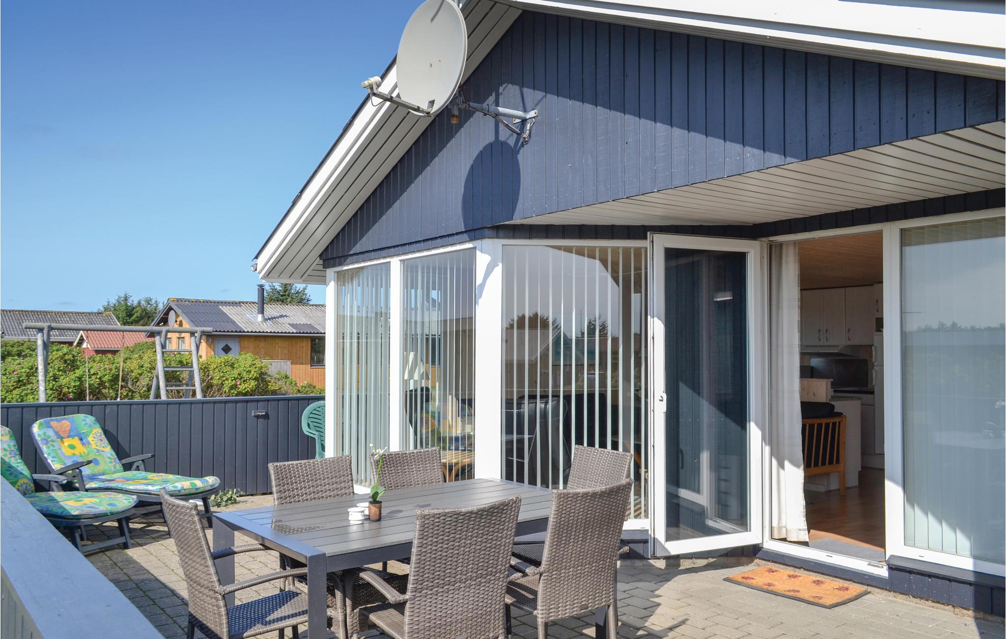 Hyggeligt feriehus i Bjerregård med sauna, lukket terrasse og tæt på Vesterhavet og indkøb.