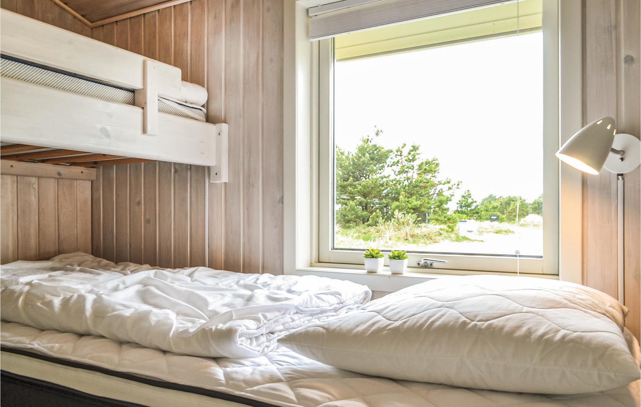 I det pragtfulde klitterræn ved Ringkøbing Fjord ligger dette skønne og velholdte feriehus - et perfekt udgangspunkt for en dejlig ferie for hele familien. Huset er velindrettet med køkken og stue i åben forbindelse med hinanden, et dejligt lysindfald og brændeovn. Der er tv med danske og tyske tv-kanaler og hurtigt og ubegrænset internetadgang. Tre velindrettede soveværelser; to med dobbeltsenge og et med køjeseng. Der er hverken langt til fiskerbyen Hvide Sande eller turistbyen Søndervig.