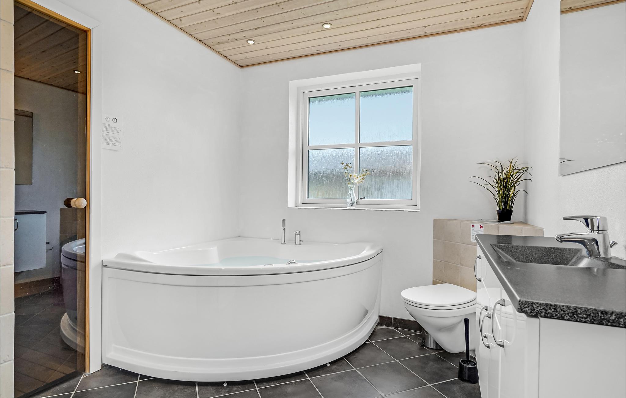 I dette dejlige og smagfuldt indrettede feriehus, som er opført i de bedste kvalitetsmaterialer både ude og inde, er der tænkt på at opfylde de fleste ferieønsker for alle aldre - uanset om I er til ren afslapning eller til en aktiv ferie. På den store grund er der, udover både gynge og sandkasse til de mindste, også et shelter samt en udendørs fiskerenseplads, hvis I er heldige at få fangst i en af områdets mange fiskesøer eller fra molen i Hvide Sande. Skulle vejret ikke være til at grille på en af de udendørs terrasser, er der også tænkt på det, idet her findes en indendørs grill. Afhængigt af årstiden indbyder Vesterhavet og den næsten uendelig lange, hvide sandstrand til både badning, solbadning og lange gåture. Efter en dejlig dag i naturen kan I slappe af med enten en tur i saunaen eller i spabadet i husets wellness afdeling.