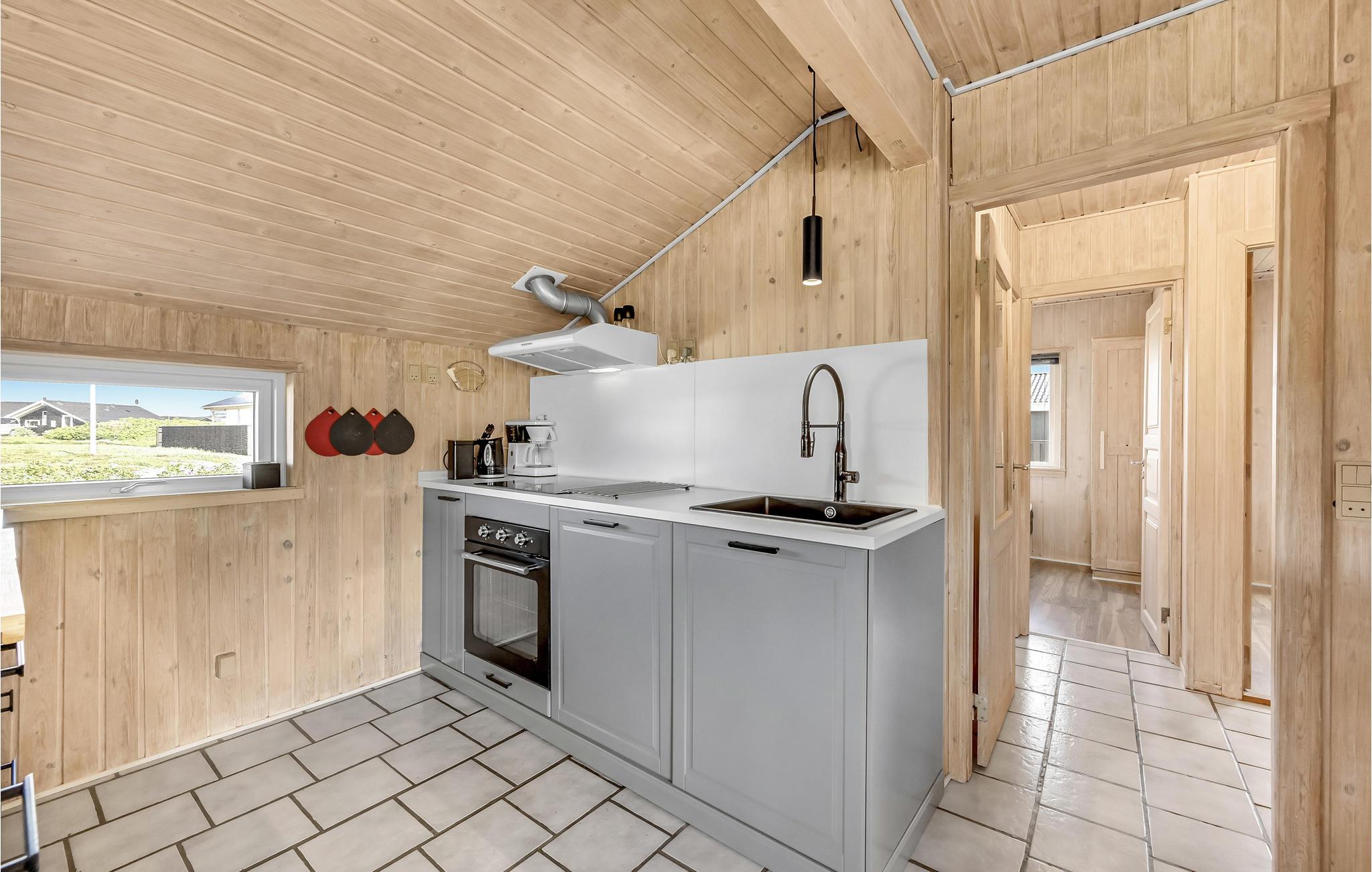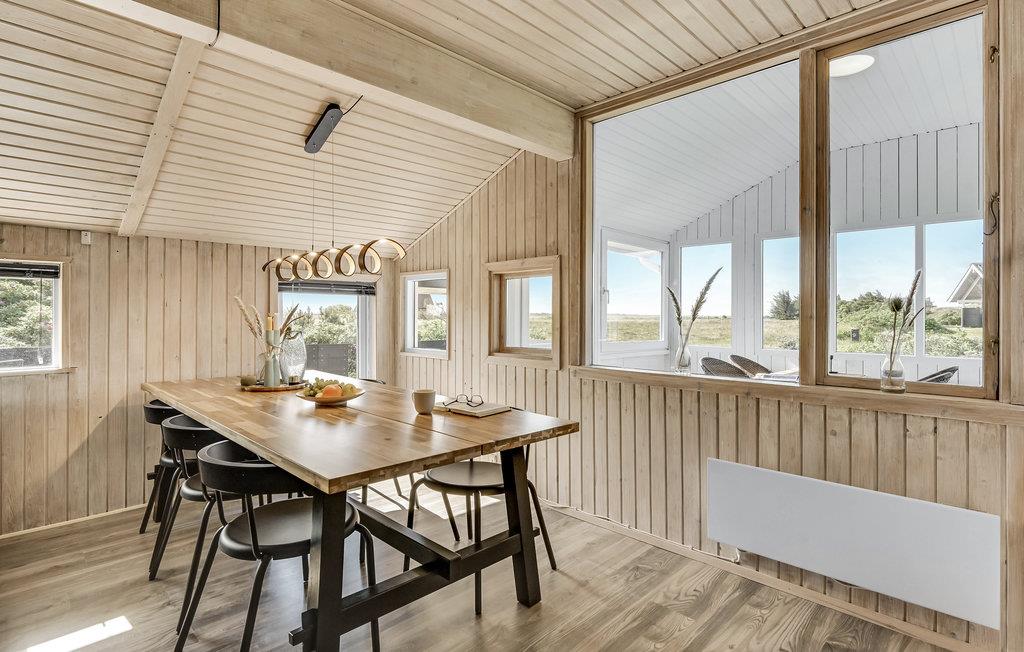 Her kan I feriere i den smukkeste natur ved havet og fjorden med masser af plads. Huset er pænt indrettet med åbent køkken og opholdsstue med brændeovn og adgang til en smuk vinterhave, hvorfra man har en vidunderlig udsigt over markerne til Ringkøbing Fjord. Feriehuset har en hjemmebiograf med 55” Smart TV med Apple AirPlay og en soundbar til en fremragende akustisk oplevelse. Ud over tyske tv-programmer har I også en PlayStation 3 til at spille spil eller se DVD/BluRay. De komfortable sæder med holdere til popcorn og drinks gør filmaftenen helt perfekt! Efter en vidunderlig dag fuld af aktiviteter i naturen kan I nyde et ophold i saunaen med dampfunktion.