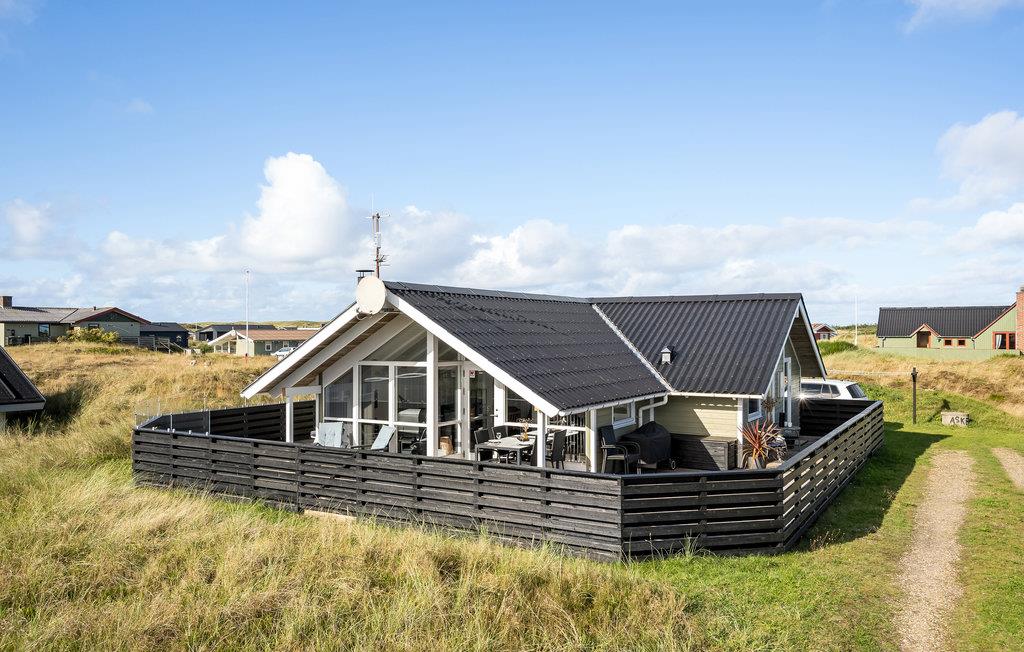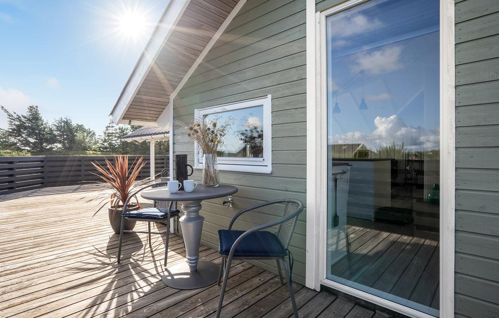 Hyggeligt feriehus tæt på Vesterhavet med lys stue, moderne køkken og solrig terrasse mod sydvest.