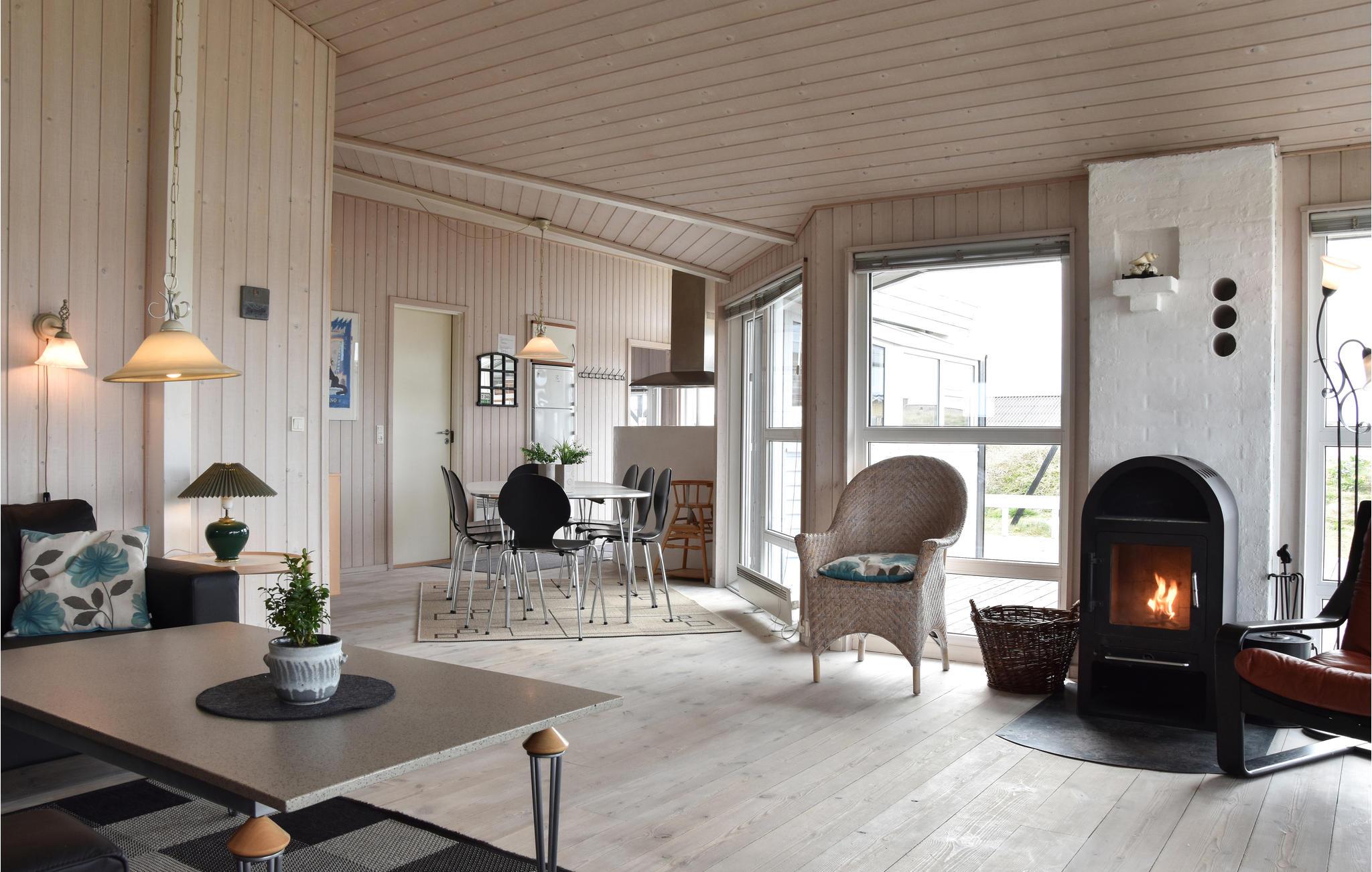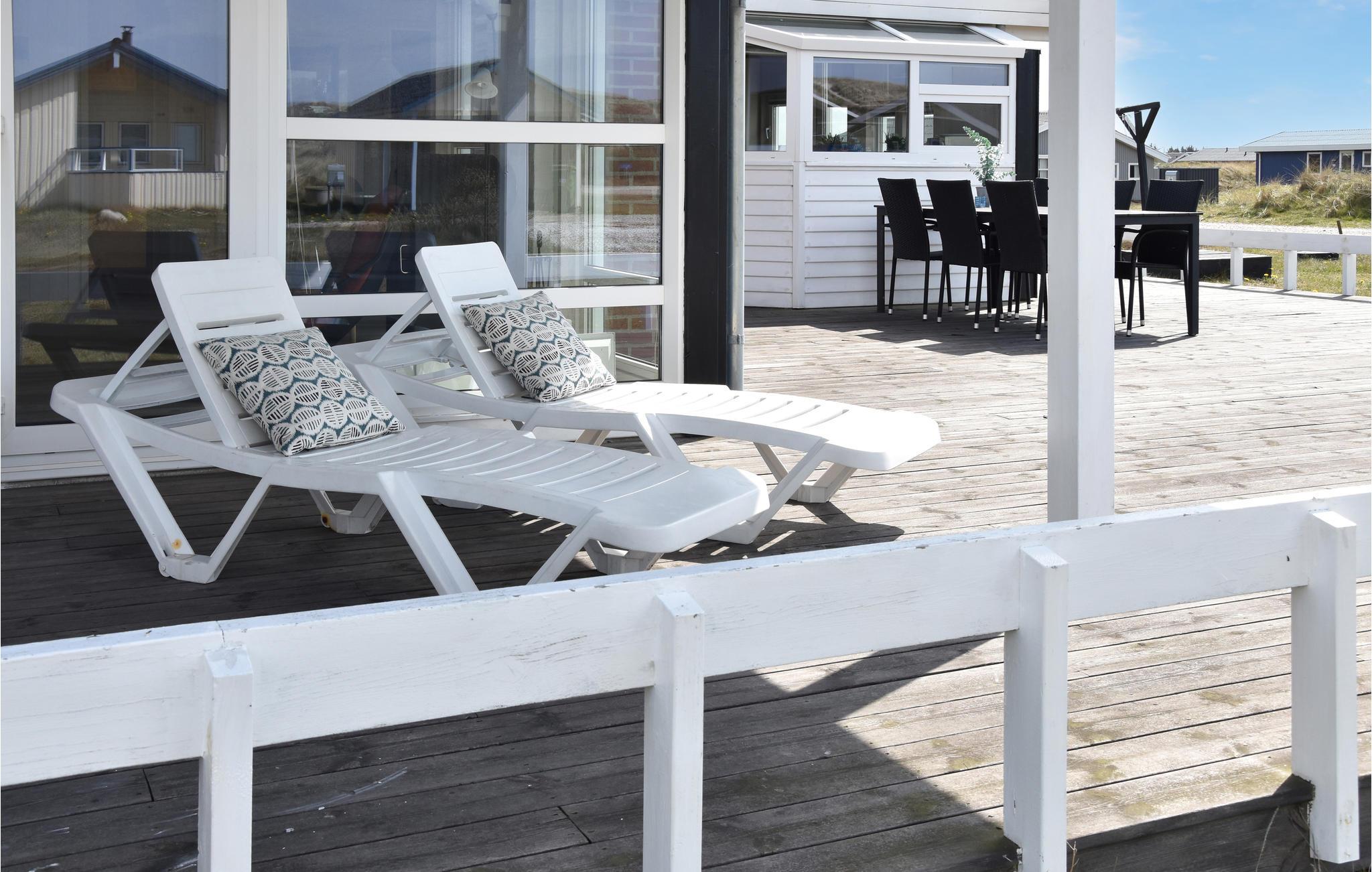 Skønt, velindrettet og velholdt feriehus på 105 m², kun 250 m fra Vesterhavet med dejlig sandstrand og brusende hav. Huset er løbende vedligeholdt og danner de bedste rammer om en afslappet ferie. I bor på en stor kuperet klitgrund, for enden af en stille vej, med en dejlig udsigt til hede- og klitarealer fra flere af husets terrasser. I huset er der en stue i åben kombination med køkkenet, fire soveværelser og to flotte badeværelser med gulvvarme, det ene med spabad. Nyd samværet med familie og venner, inden døre i hyggelige omgivelser foran brændeovnens knitrende flammer. Eller tag et hurtigt smut til stranden og Vesterhavets blå bølger og storslåede natur, på udflugter til Hvide Sande, med mange gode butikker, spændende restauranter og aktiviteter – det er ferie.