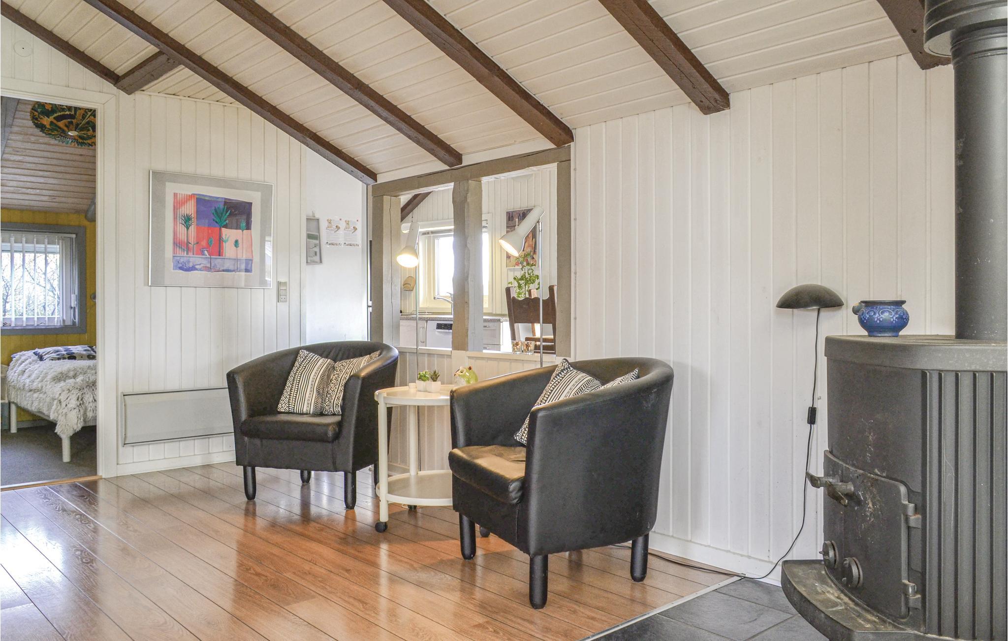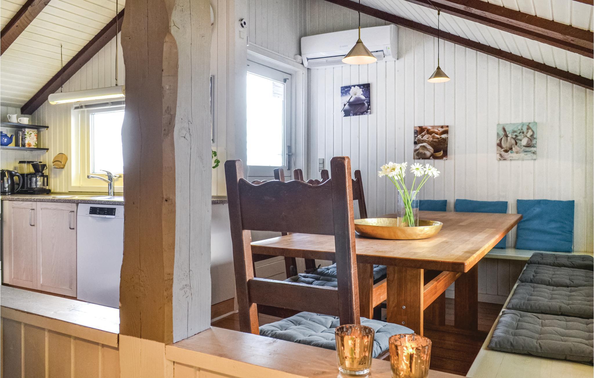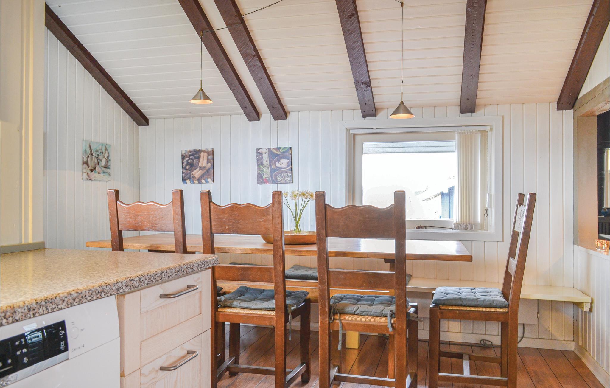 Tæt ved hav og fjord ligger dette indbydende feriehus med indendørs swimmingpool og alskens ekstraudstyr. Huset er spændende indrettet og pænt og hyggeligt møbleret med pæne møbler og den gode film fra parabolen kan I nyde på fladskærms-tv'et. Udover husets 120 m² er der en vinterhave og 11 m² anneks. Annekset, hvor der er to senge, er gennemisoleret og kan opvarmes om vinteren. Huset er godt udstyret og der er lagt vægt på en smuk og harmonisk farvesammensætning. Swimmingpoolen er ideel til en forfriskende svømmetur efter en dag i den friske luft. De 50 m² terrasser er fordelt således, at I både kan nyde morgen- og aftensolen udendørs. I huset er der to badeværelser og det er velegnet til to familier.