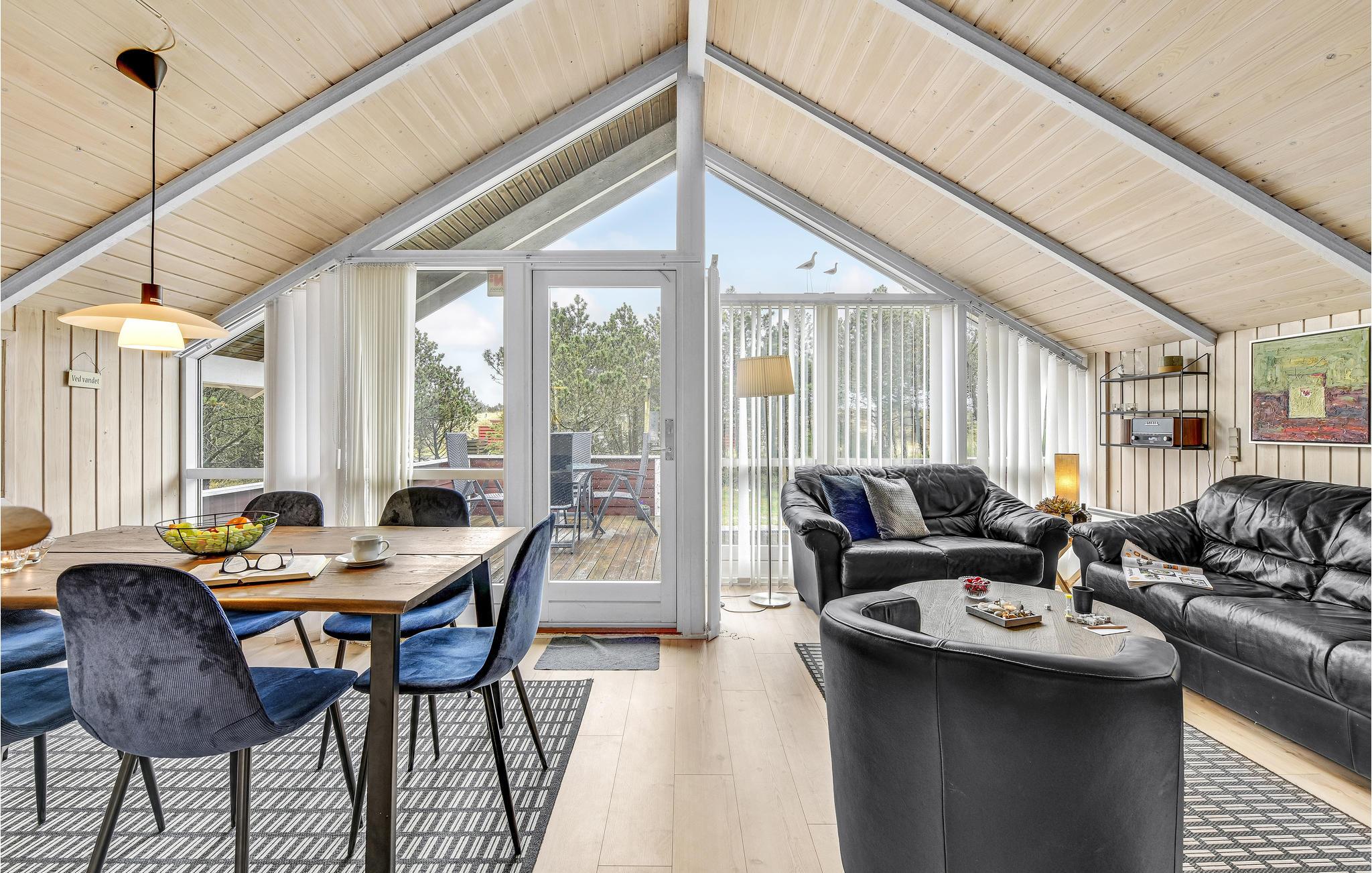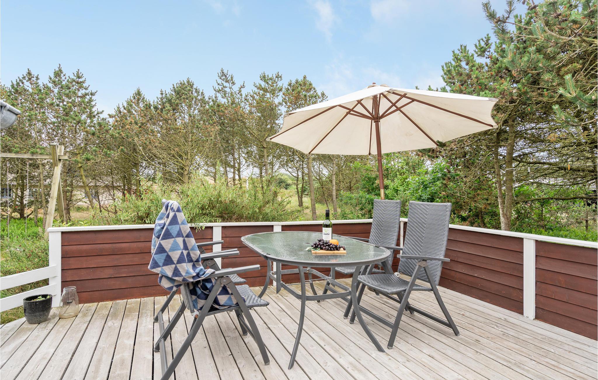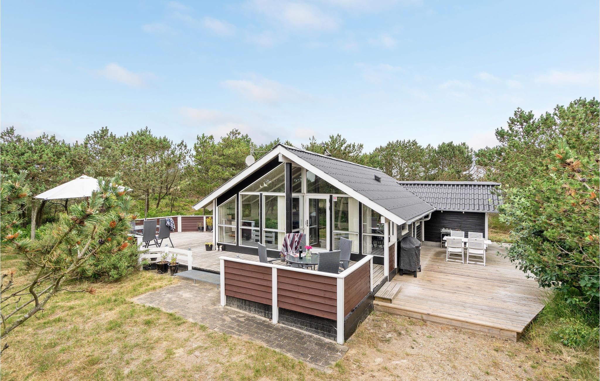 Flot og veludstyret feriehus, beliggende på en let kuperet klitgrund, som er delvist omkranset af fyrretræer. Huset er løbende vedligeholdt, og indeholder bl.a. et flot badeværelse med spabad og sauna, et dejligt lyst køkken i åben forbindelse med den hyggelige og stemningfyldte stue med brændeovn. Til den moderne familie findes der hurtigt internet (fiber-bredbånd), tv med Apple-tv og Chromecast til egne programpakker. Huset er omgivet af en stor, skøn terrasse med dejlige havemøbler og grill, hvor I kan nyde de lange lyse sommerdage. Tæt ved huset går en sti direkte ned til Vesterhavets blå bølger og lange sandstrande. Området ved hav og fjord giver masser af spændende udfoldelsesmuligheder: bl.a. sildefiskeri fra slusen i fiskerbyen Hvide Sande, vandsport på Ringkøbing Fjord, museumsbesøg, shopping og nyde områdets gode restauranter.