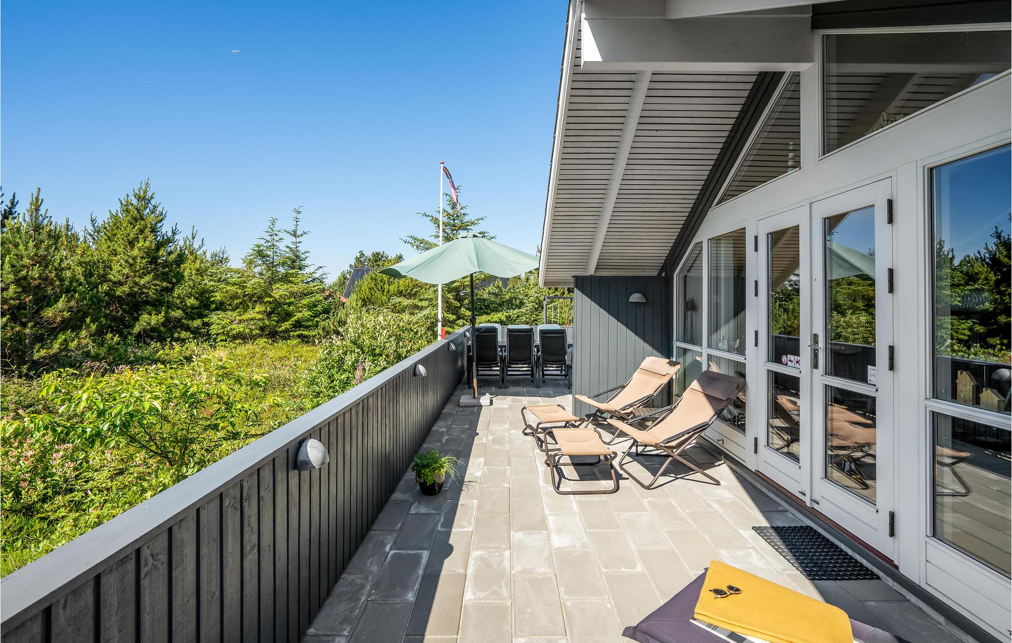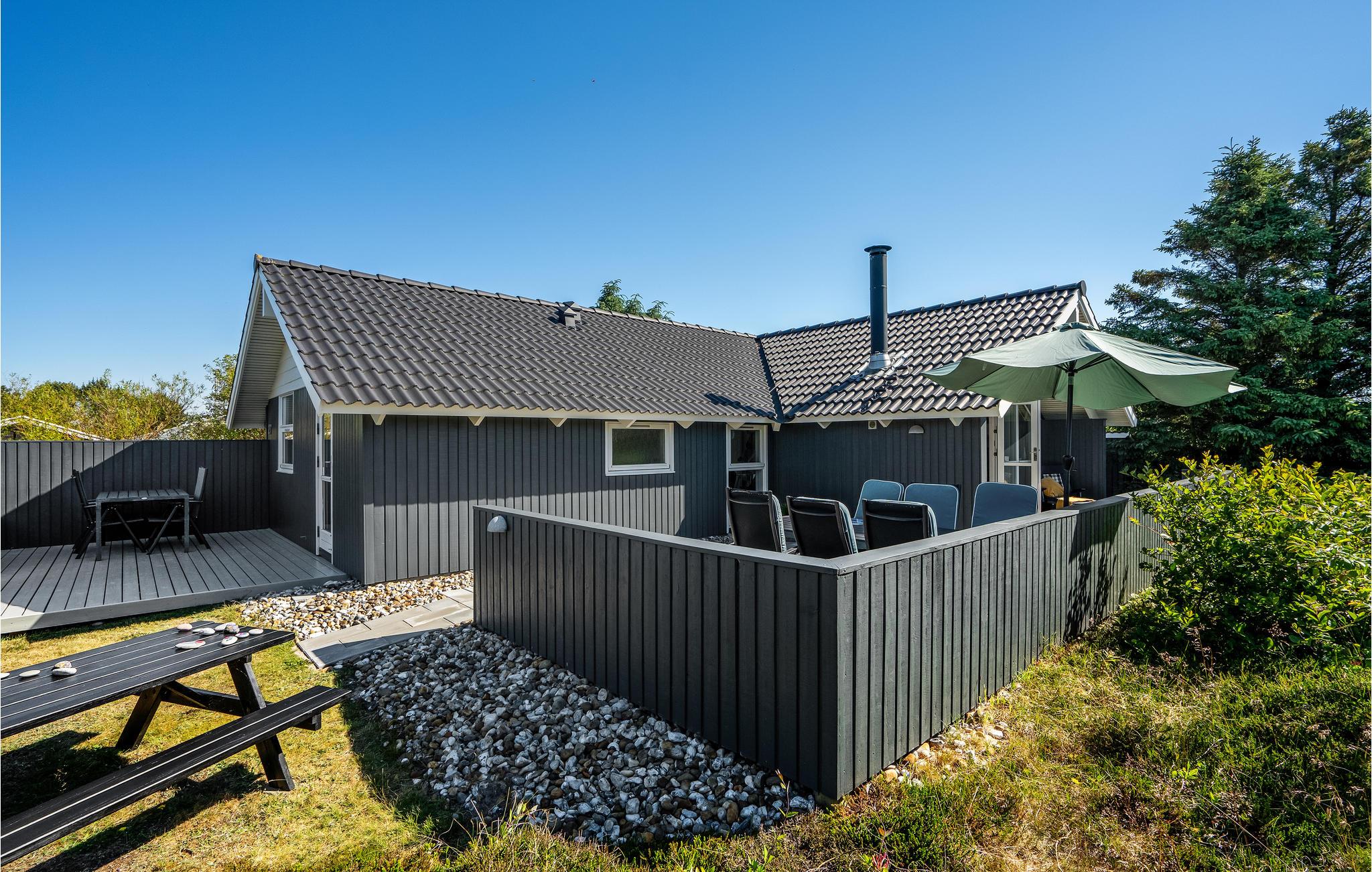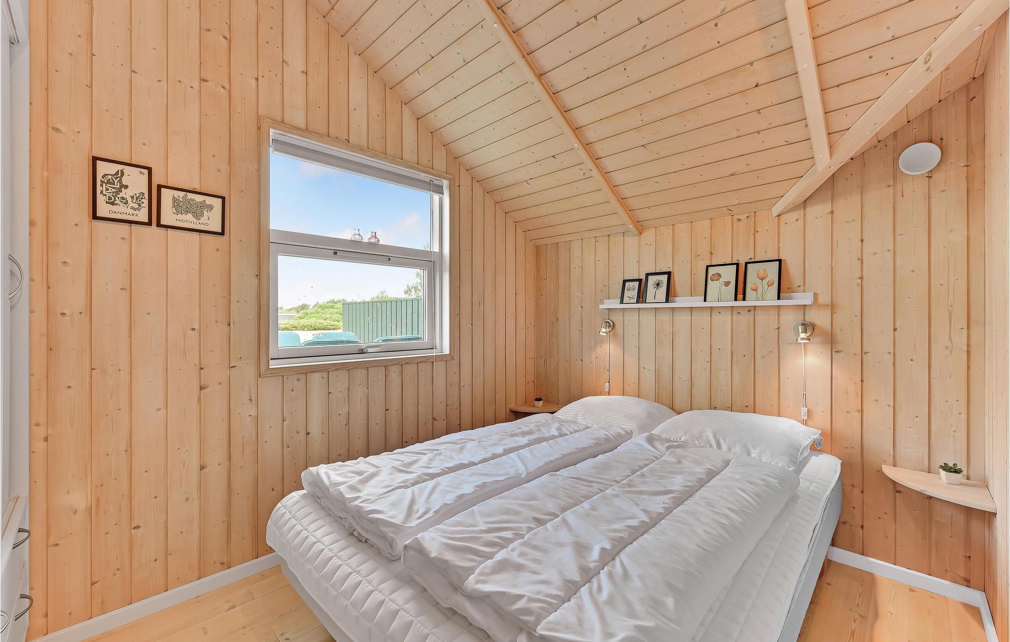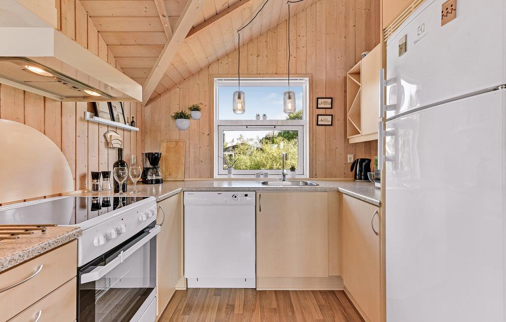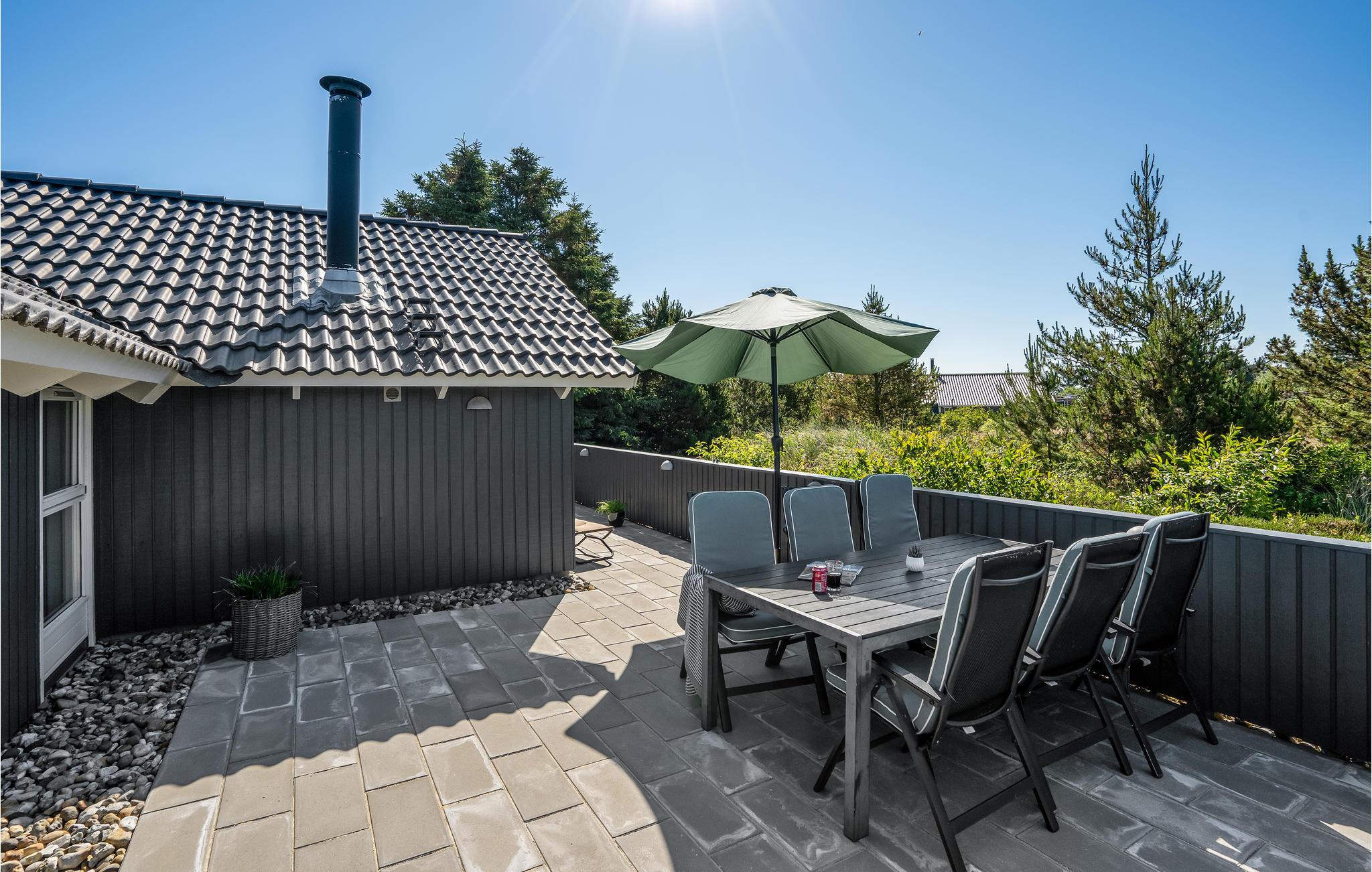 På en dejlig stor naturgrund ligger dette moderne og velholdte feriehus, som er smagfuldt og hyggeligt indrettet. I haven er der legeredskaber til børnene, ligesom det er skønt at sidde på terrassen, der er afskærmet af et hegn. Her er udendørs belysning, til de lange lune sommeraftner, hvor det er svært at rive sig løs og gå indendørs. Huset ligger i gåafstand af badestrand, fjorden og den lokale købmand. Området indbyder til lange gåture langs stranden eller i det uberørte klitlandskab.