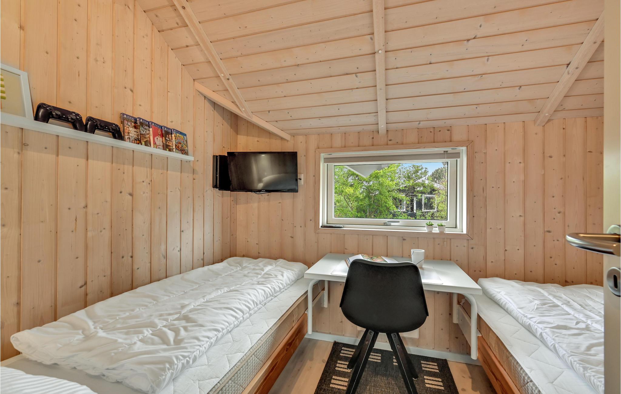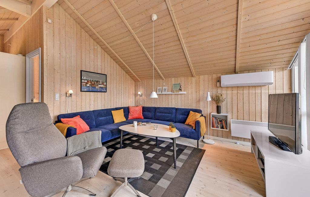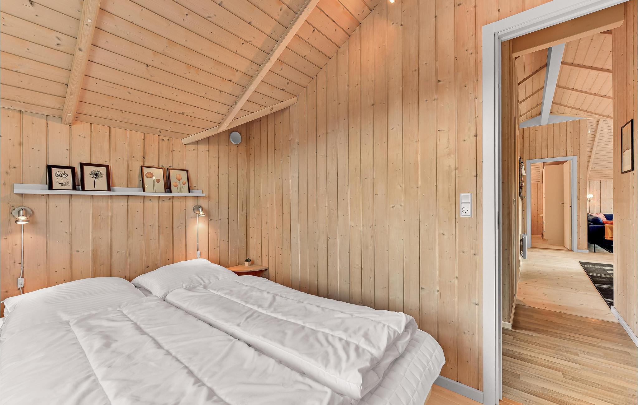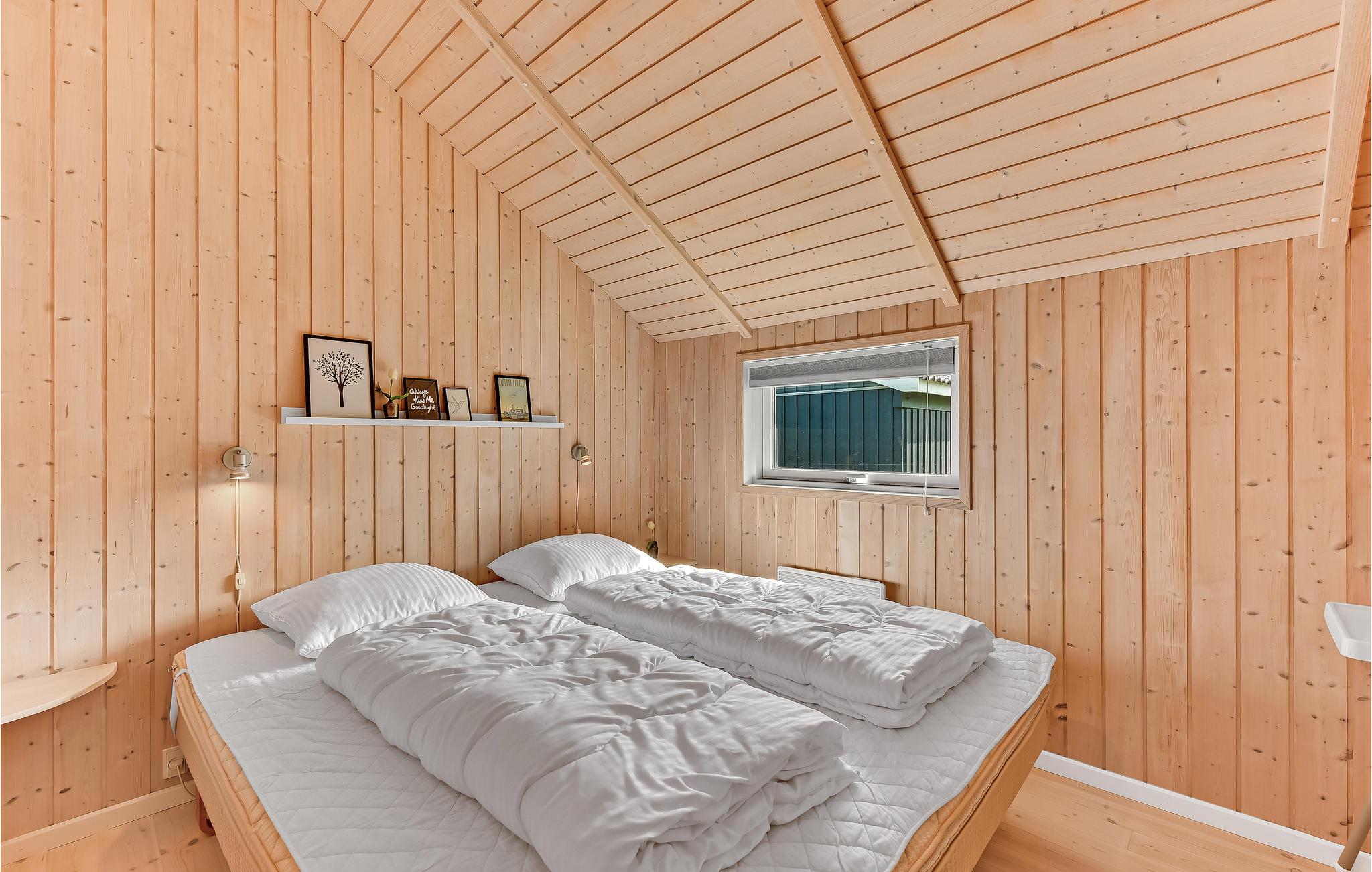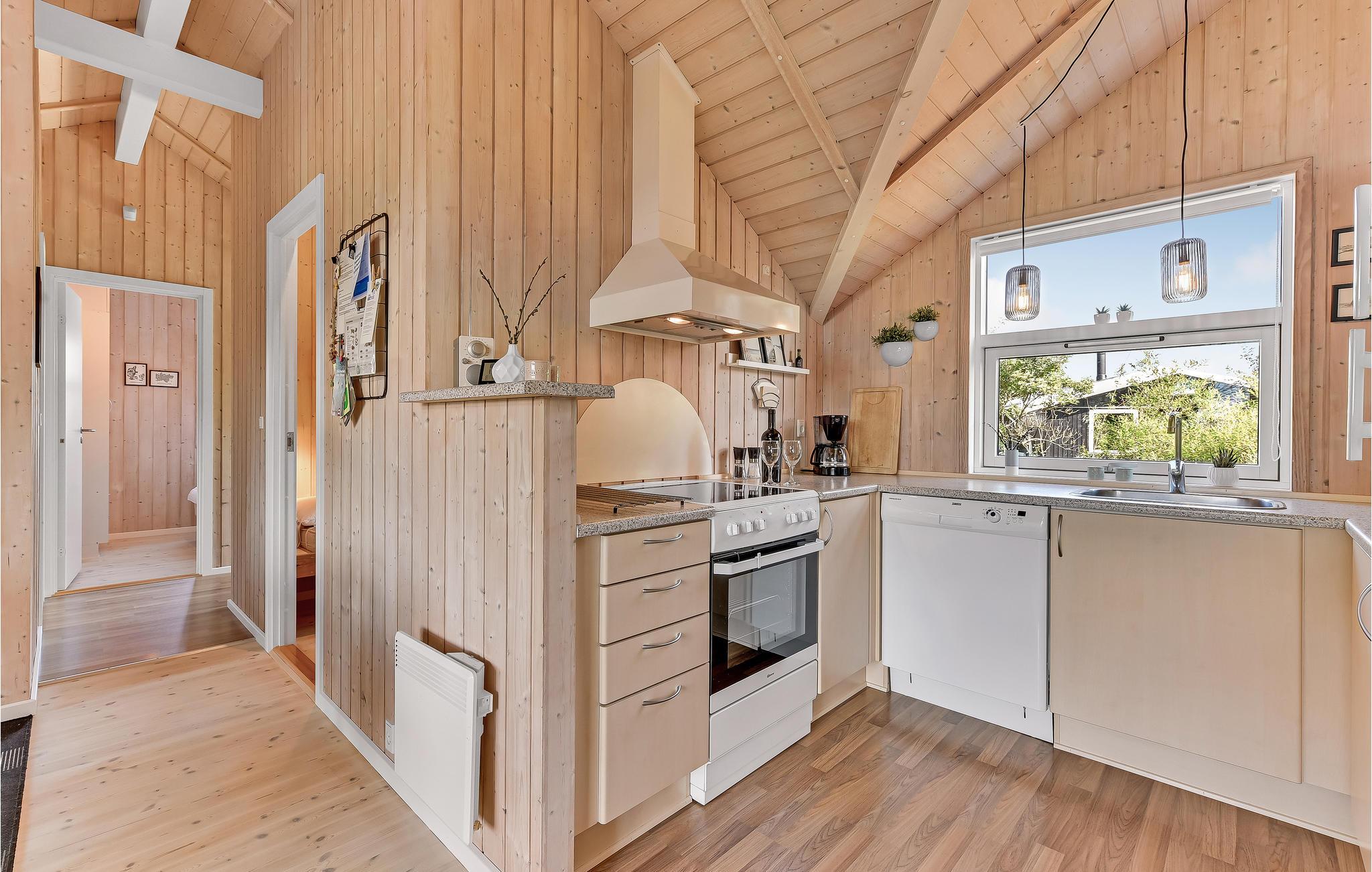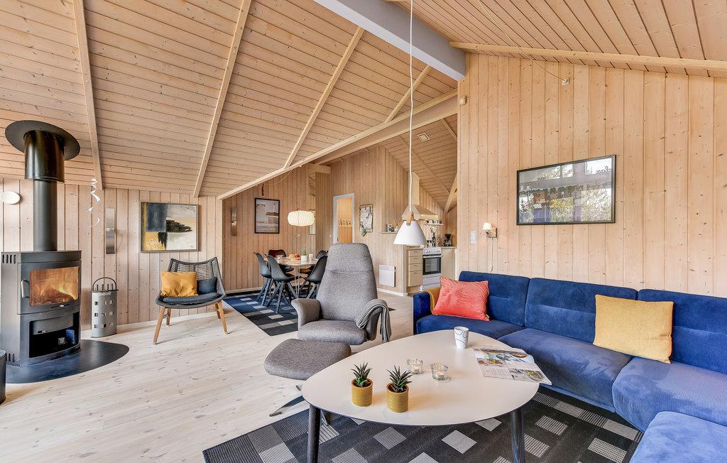 På en dejlig stor naturgrund ligger dette moderne og velholdte feriehus, som er smagfuldt og hyggeligt indrettet. I haven er der legeredskaber til børnene, ligesom det er skønt at sidde på terrassen, der er afskærmet af et hegn. Her er udendørs belysning, til de lange lune sommeraftner, hvor det er svært at rive sig løs og gå indendørs. Huset ligger i gåafstand af badestrand, fjorden og den lokale købmand. Området indbyder til lange gåture langs stranden eller i det uberørte klitlandskab.