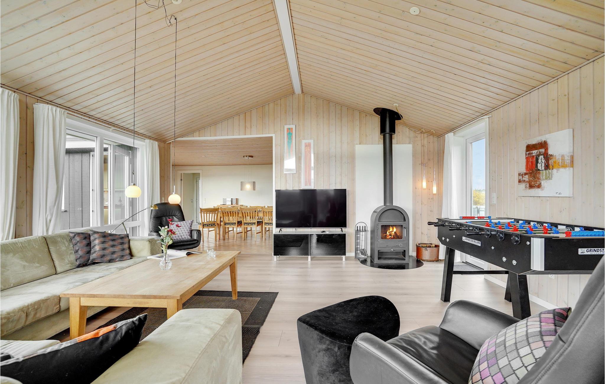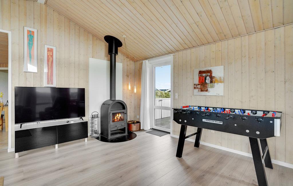 Dette store, flotte feriehus har en spændende og anderledes indretning.