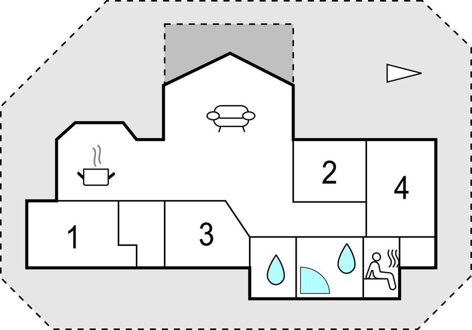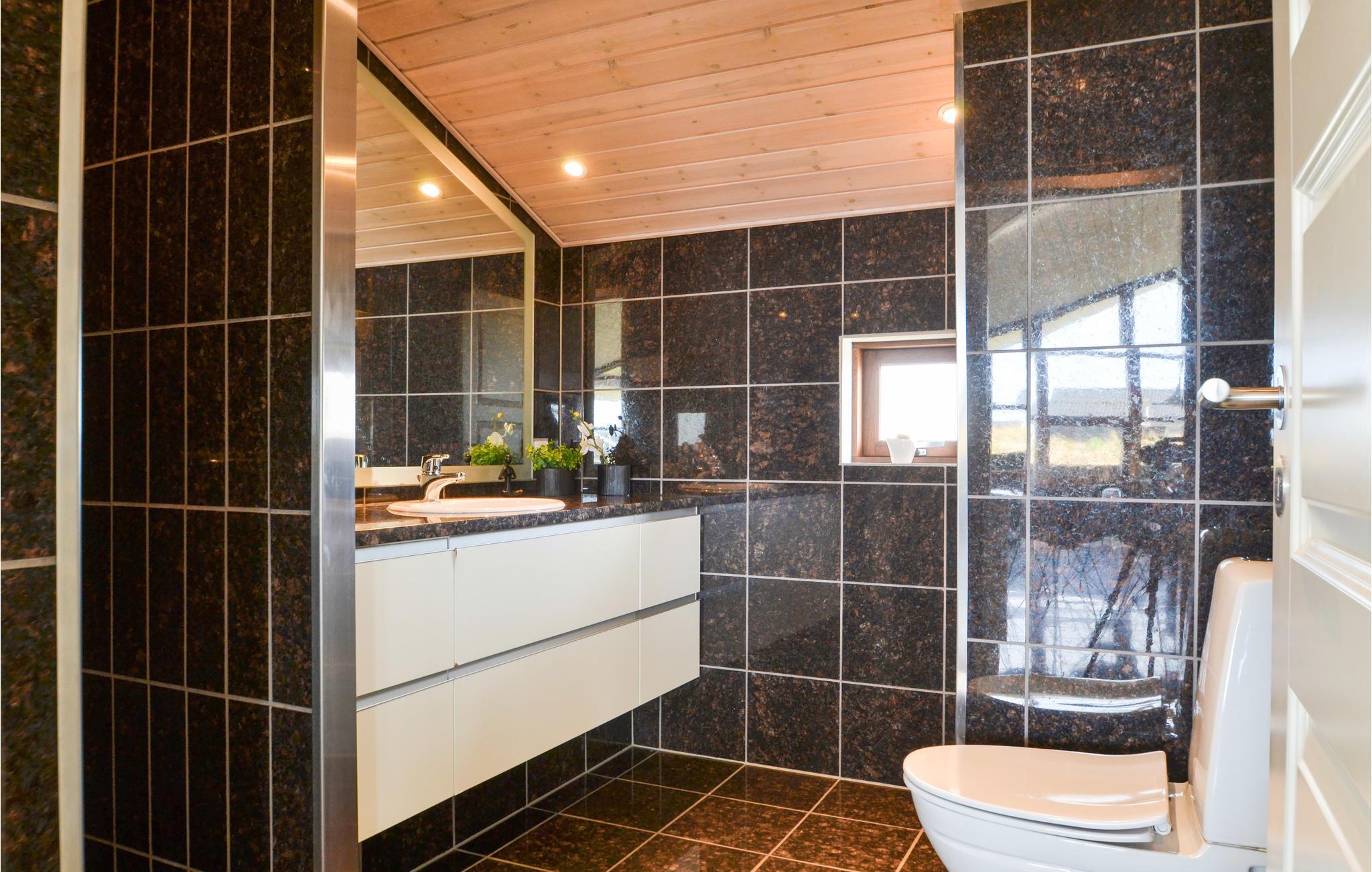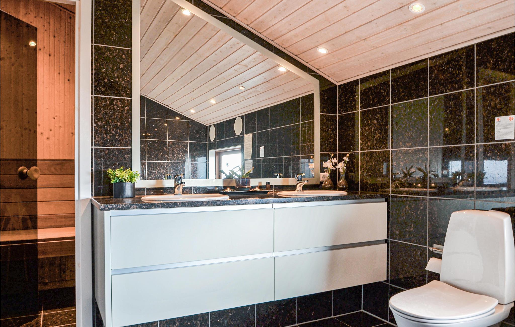 I det store eksklusive badeværelse med spabad og direkte adgang til sauna, er der installeret højtalere, så der kan nydes wellness med dejlig musik til. Udenfor strækker den store, lukkede terrasse sig hele vejen rundt om huset, hvoraf en lille del er overdækket; her er god mulighed for at finde en hyggekrog med læ, så terrasselivet kan opleves uanset årstid.