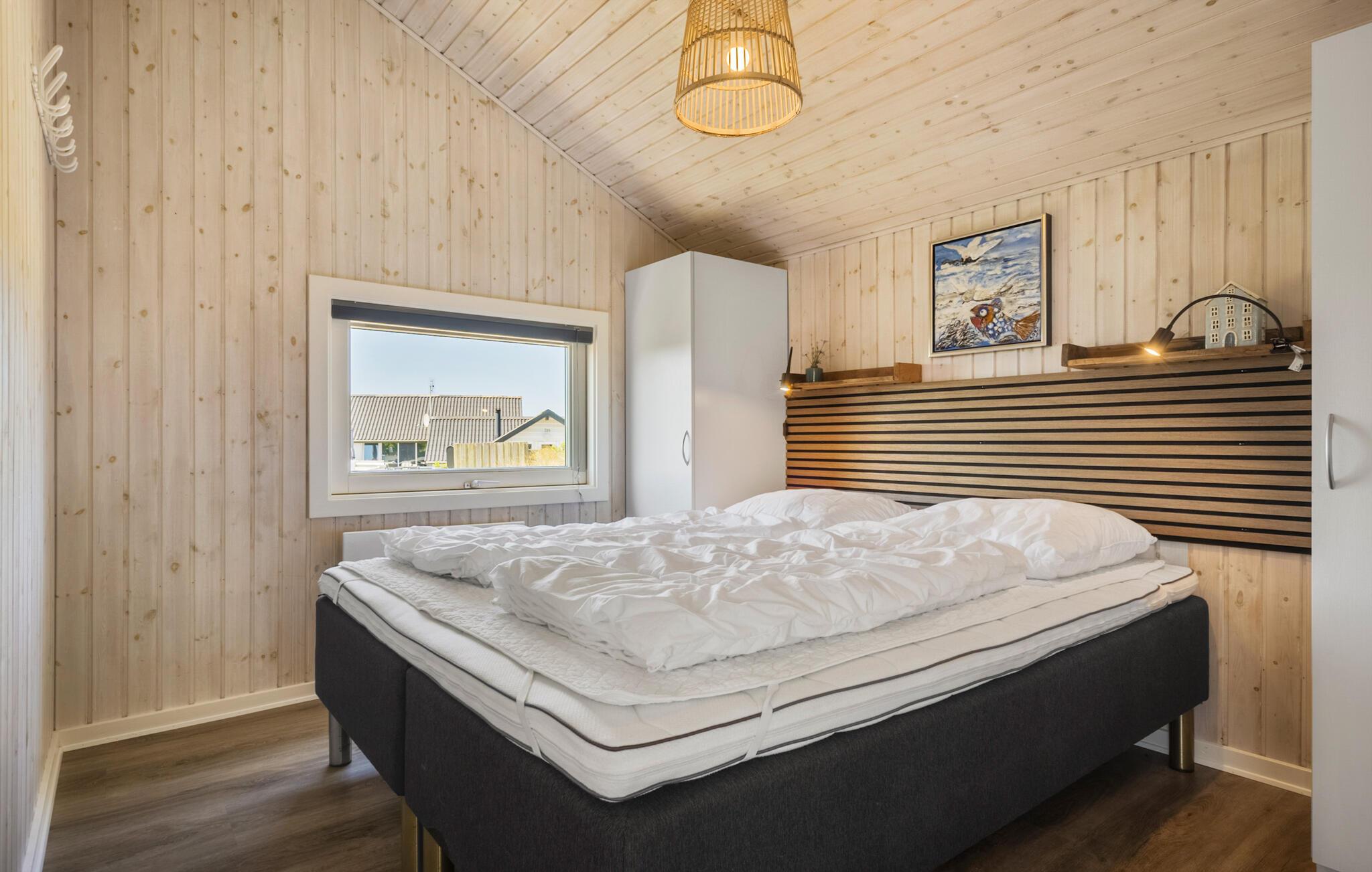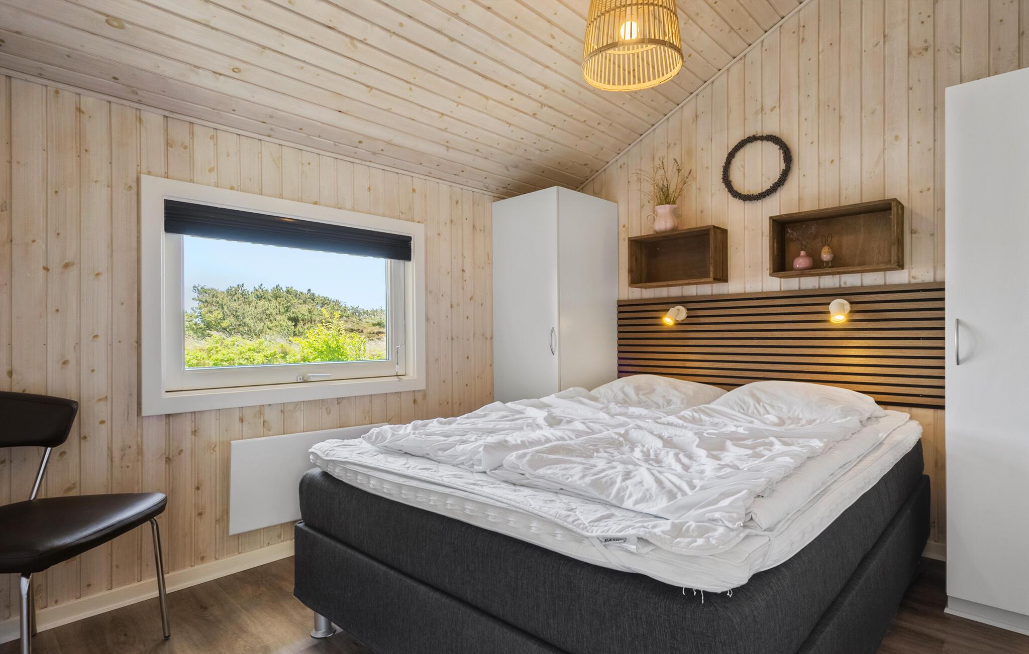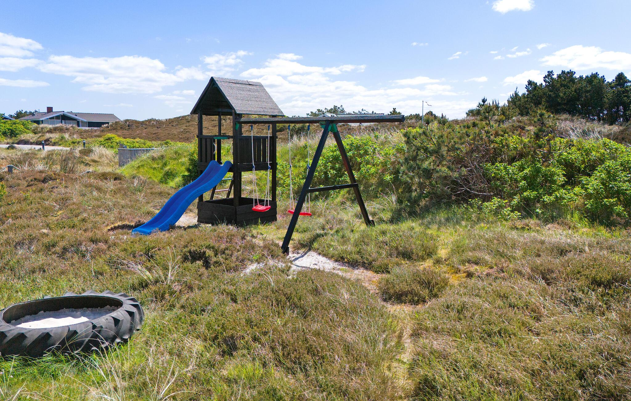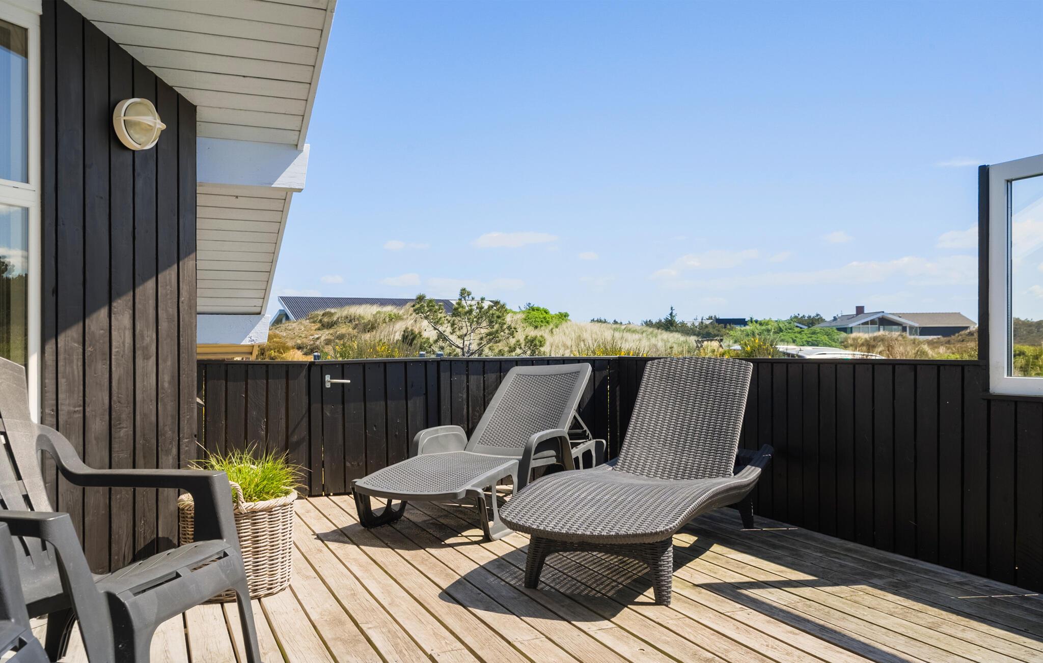 Dejligt og velindrettet feriehus på en let kuperet klitgrund kun 400 m fra Vesterhavet. Huset er løbende vedligeholdt og fremstår overalt pænt og moderne. De store vinduespartier i stuen gør, at huset virker lyst og venligt. I stuen finder I også alkoven, som kan bruges som soveplads eller bare til en hyggestund med en god bog ved siden af brændeovnen. Der er gode terrasser rundt om huset, den sydvendte er helt lukket, hvilket er ideelt, hvis I har mindre børn med. Fra huset er der kun få minutters gang til Bjerregård Strand, der indbyder til en dukkert i Vesterhavets salte bølger eller en gåtur langs vandet. Få hundrede meter fra huset mod nord ligger et stort fredet klitområde, som er særdeles velegnet til en gåtur i den friske, vestjyske havluft. Efter en god, lang dag i naturen, kan I afslutte hjemme i huset med wellness i spabadet eller i saunaen. Det internationalt kendte Legoland, ligger kun 90 km fra feriehuset.